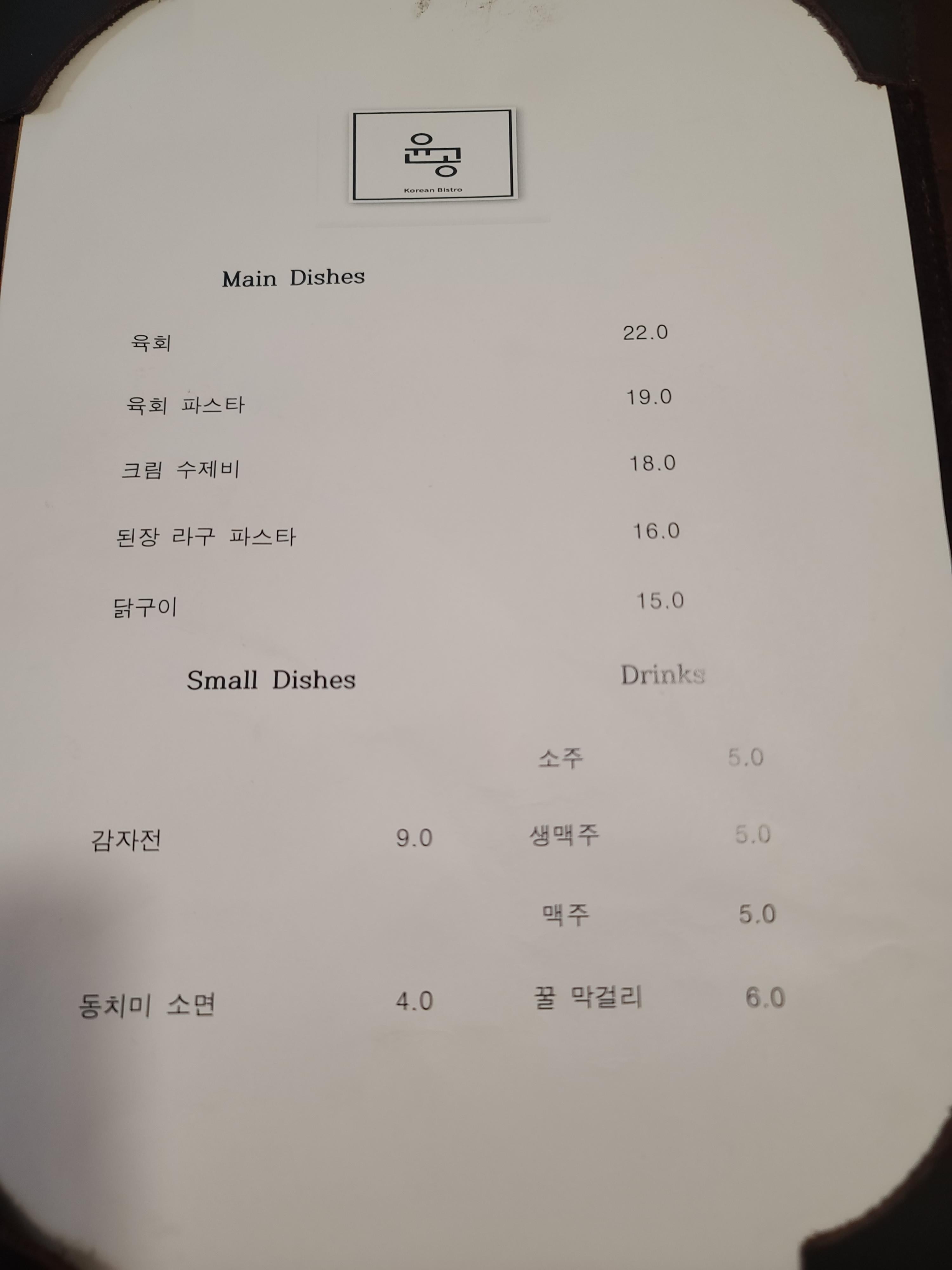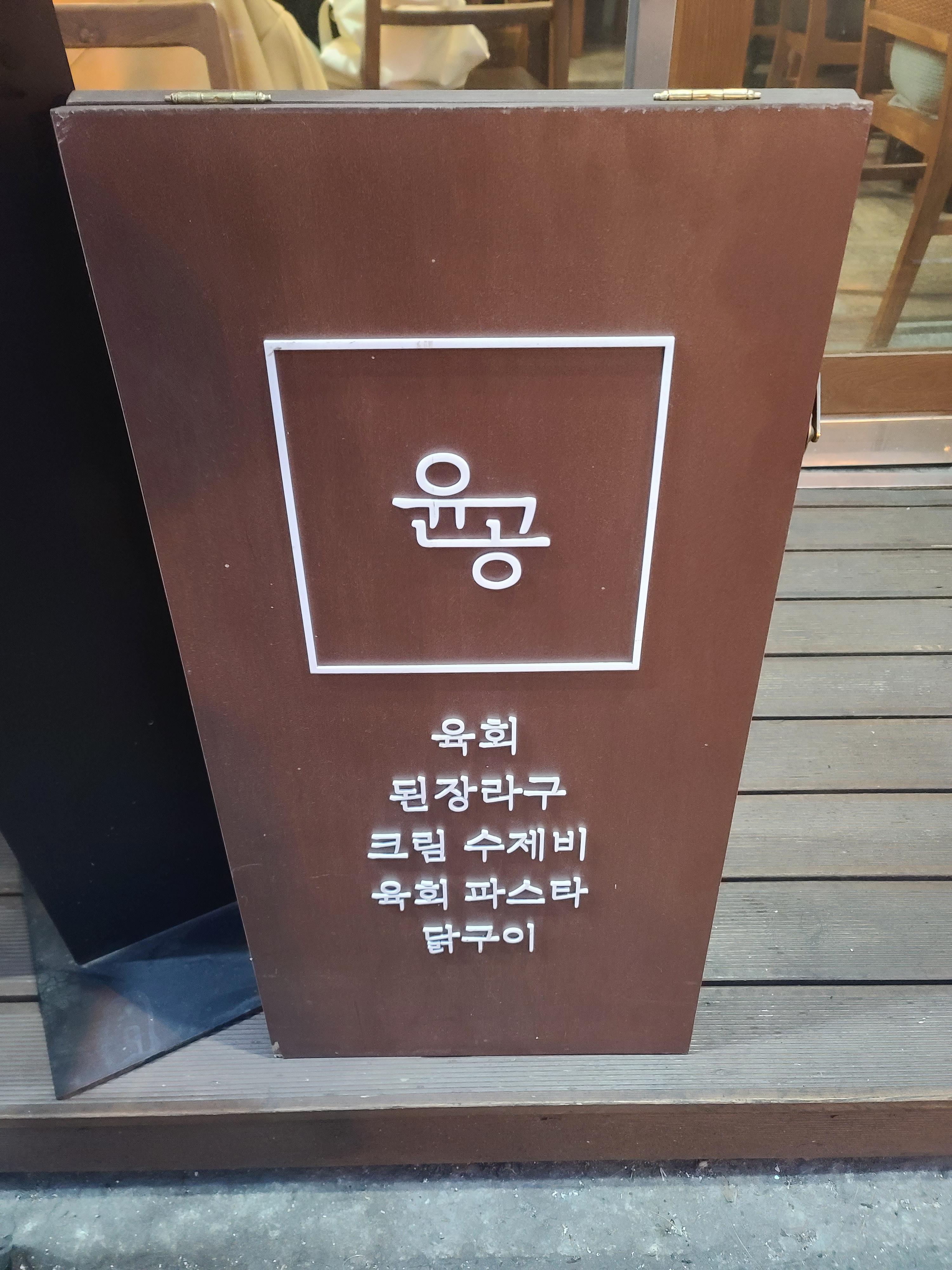 매장의 간판- 윤공은 무슨 뜻일까요? 한국식 작은 식당 윤공은 방송3사에 출연한 유명 쉐프와 이태원의 경력 쉐프가 만나 퓨전한식을 합작했다고 합니다. 모든 재료는 국산이고 소스도 수제로 직접 만든다고 해서 기대가 되었습니다.