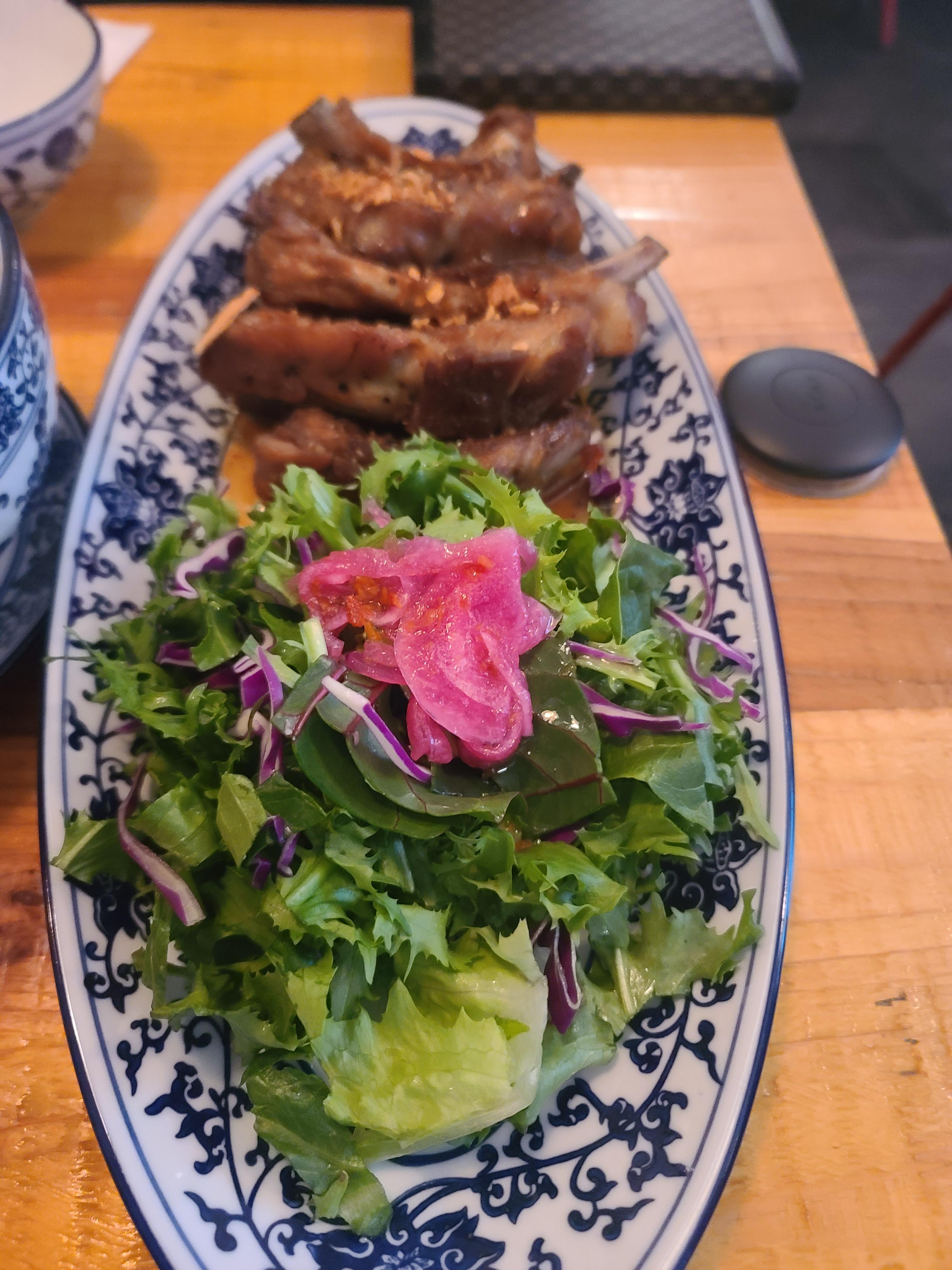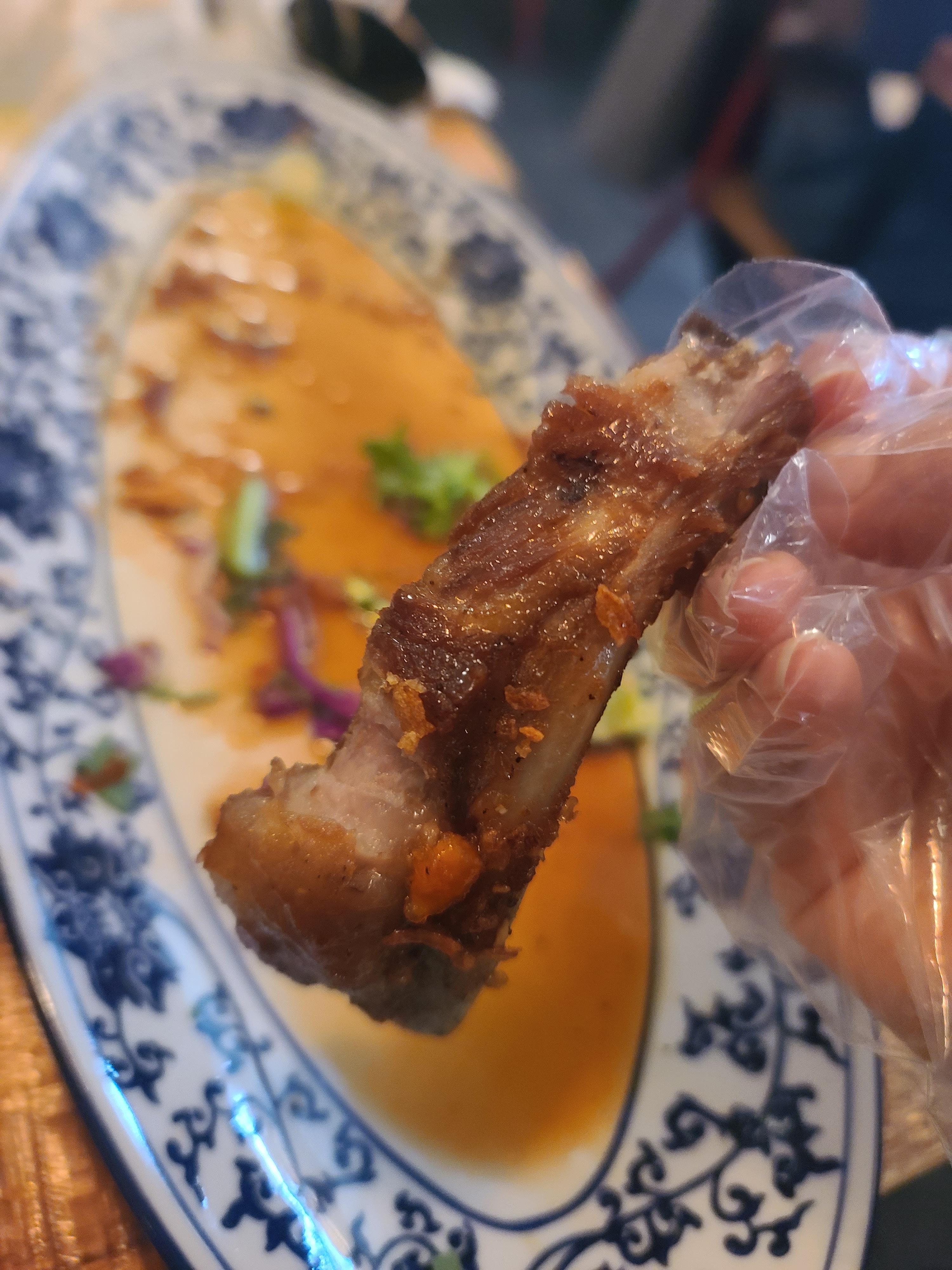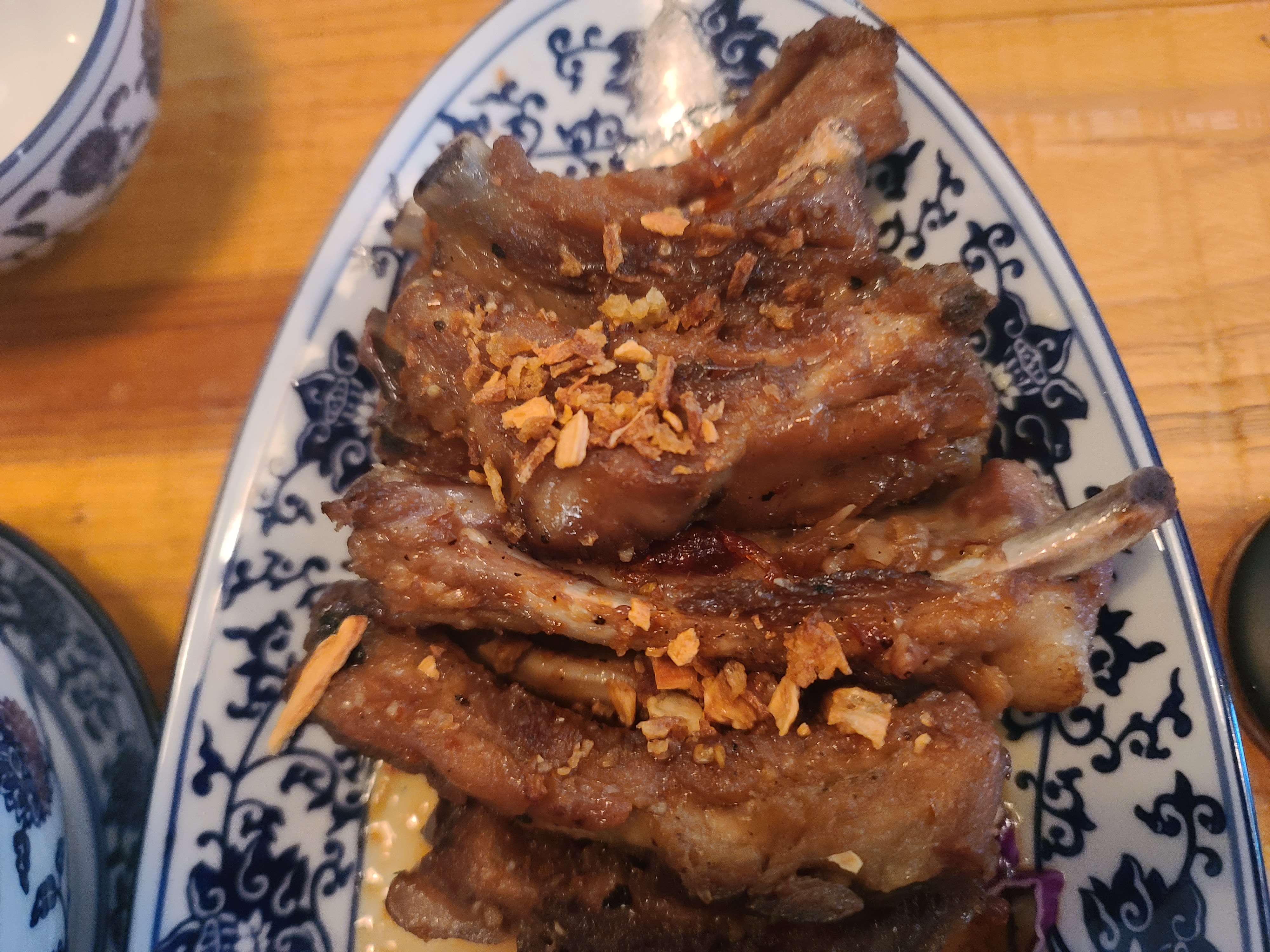 첫번째로 돼지갈비 튀김이 나왔다. 갈비나 고기를 좋아하는 나로써는 갈비를 튀겼다니 더 궁금해지는 맛이었다.