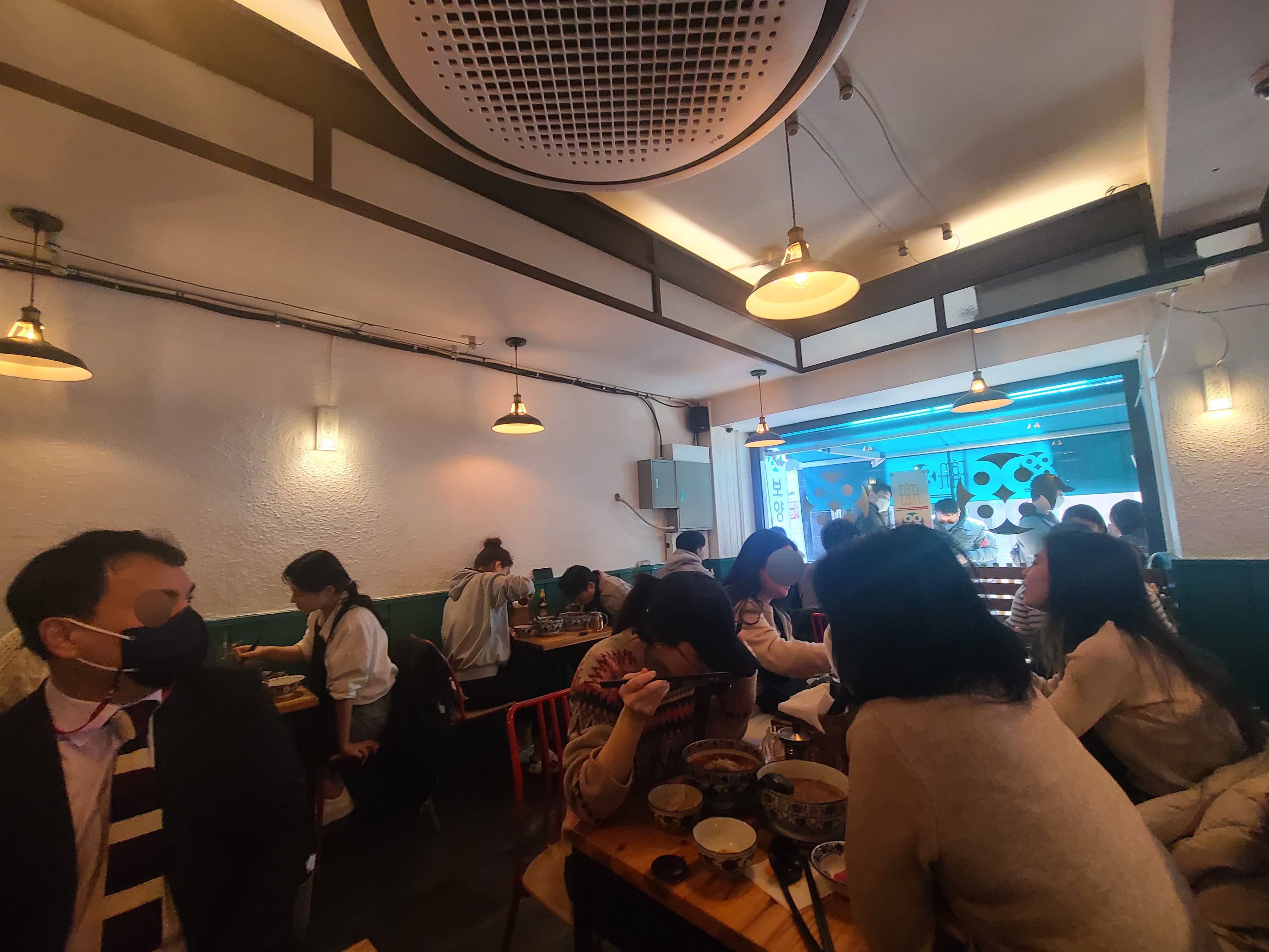 테이블 사이의 간격은 좁은 편이고 사람들로 안에는 꽉 차 있었다.