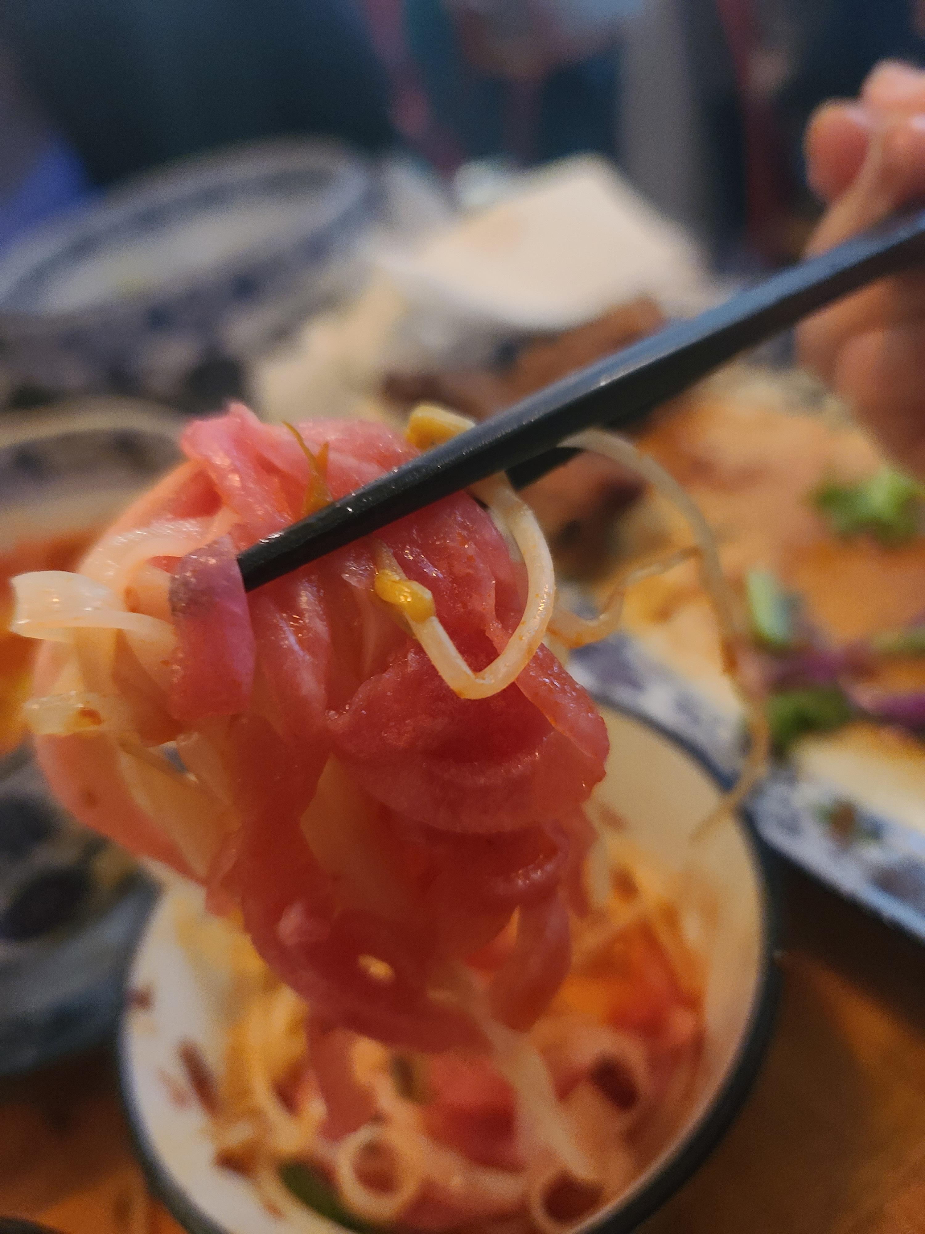 쌀국수가 입맛에 안 맞아서 양파절임을 넣어서 먹었더니 상큼하니 잘 어울렸다.