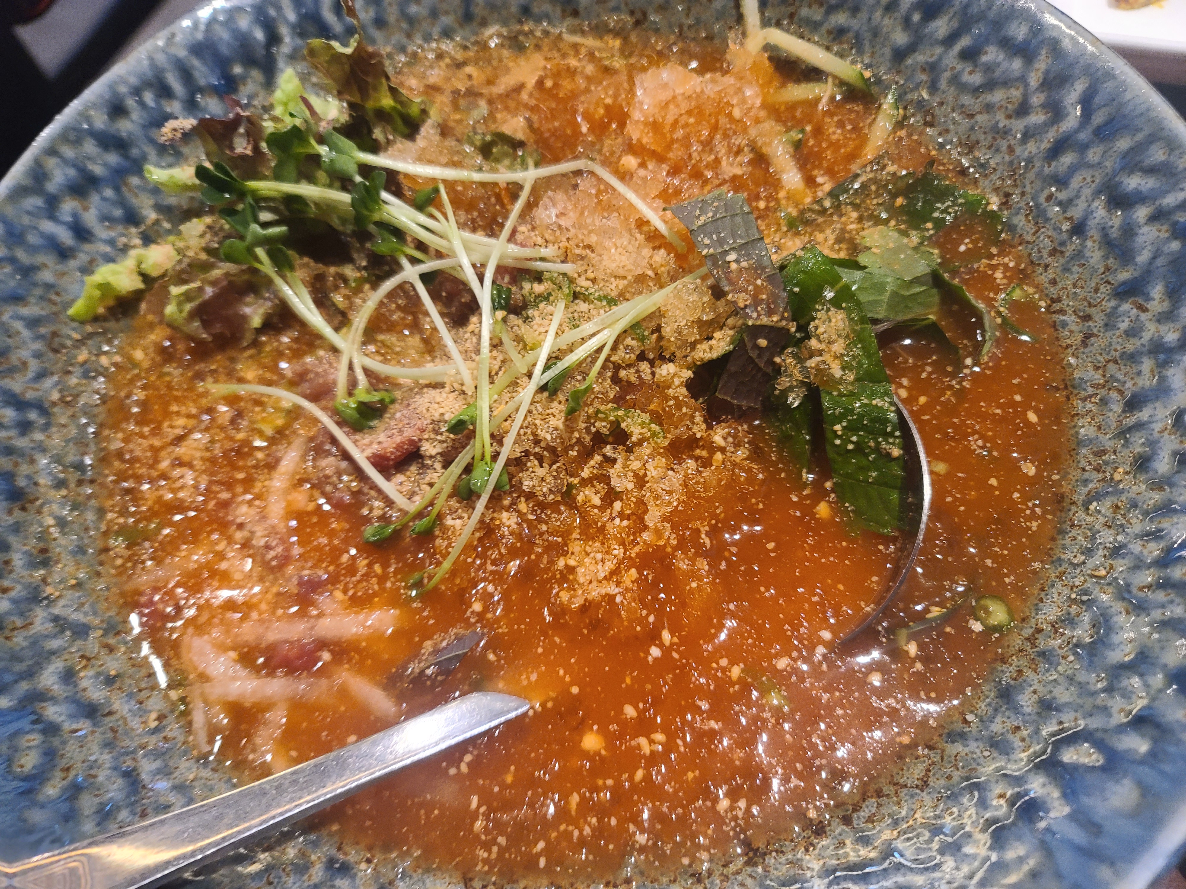 한우가 듬뿍 들어있고 다양한 식감의 야채들과 함께 떠 먹는 시원하고 상큼한 물회가 정말 끝내주는군요