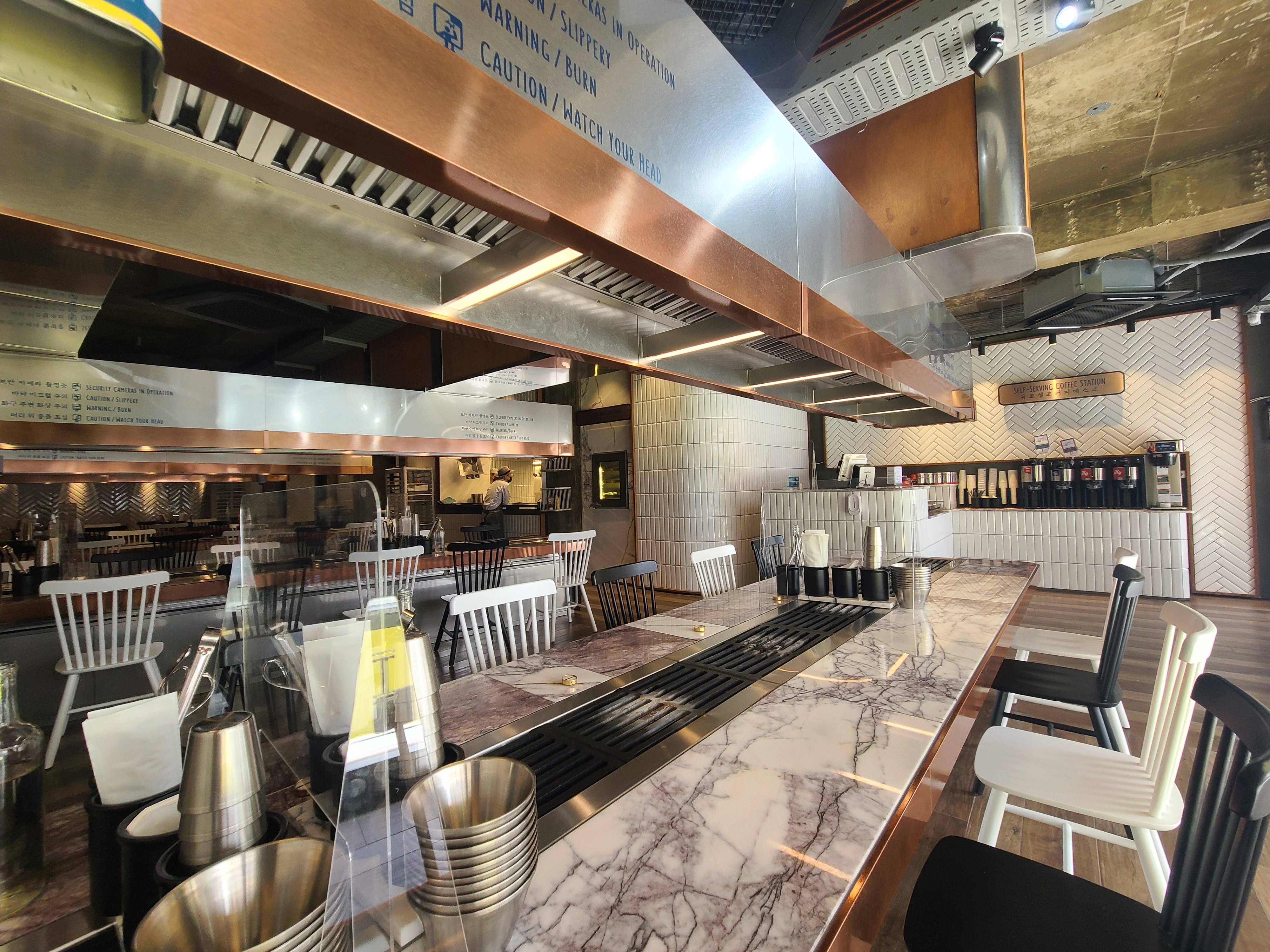 천정과 대리석 상판 가운데에 고기 굽는 화로와 환기구가 있습니다. 고기는 다음에 먹는 걸로~^^
