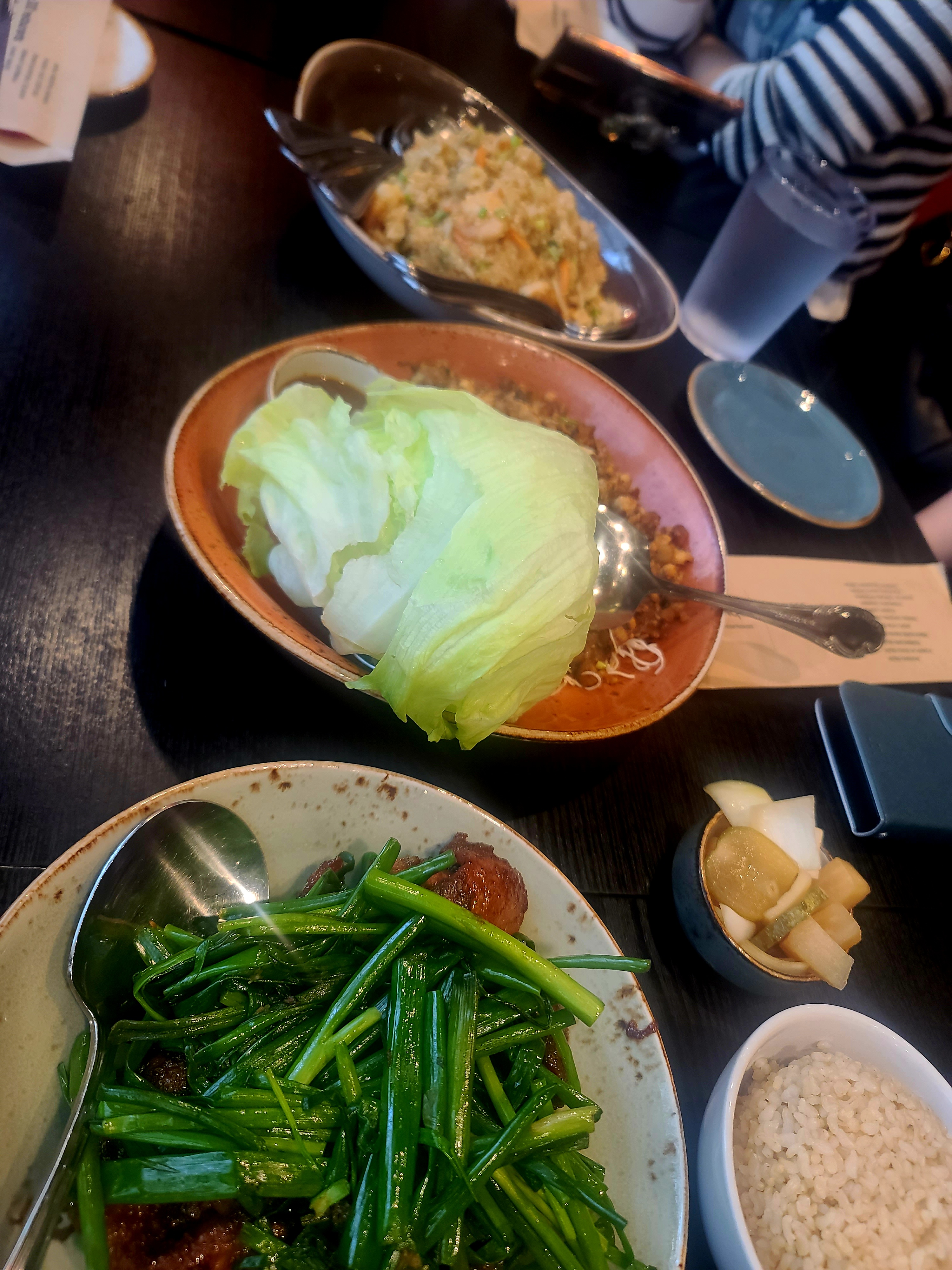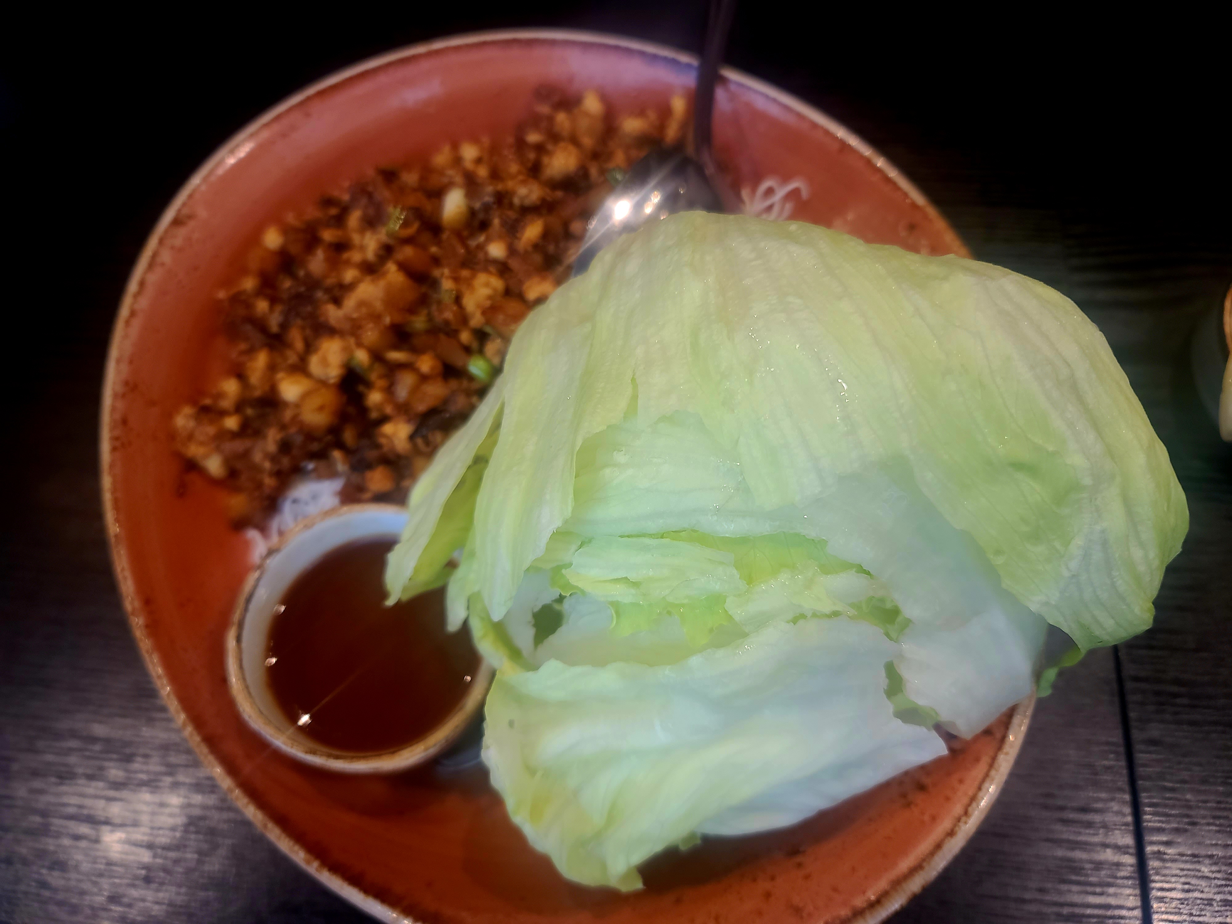 양상추를 뜯어서 다진 치킨을 올리고 스픈으로 소스를 얹은뒤 상추쌈처럼 싸서 먹었는데 기대보다 훨씬 더 맛있었다.