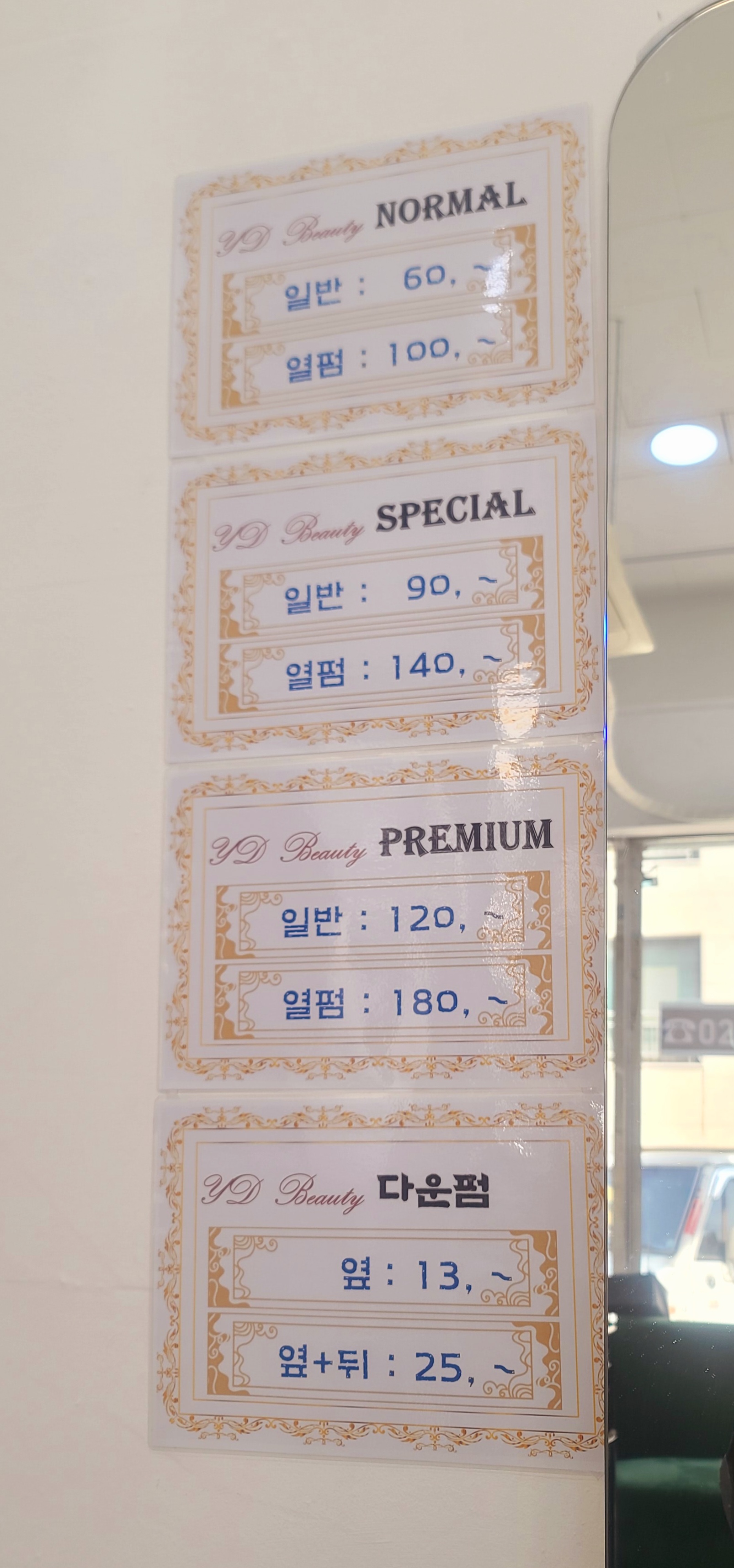 남성 스페셜펌9만->4만5천, 옆뒤 다운펌 2만5천, 커트1만8천->9천