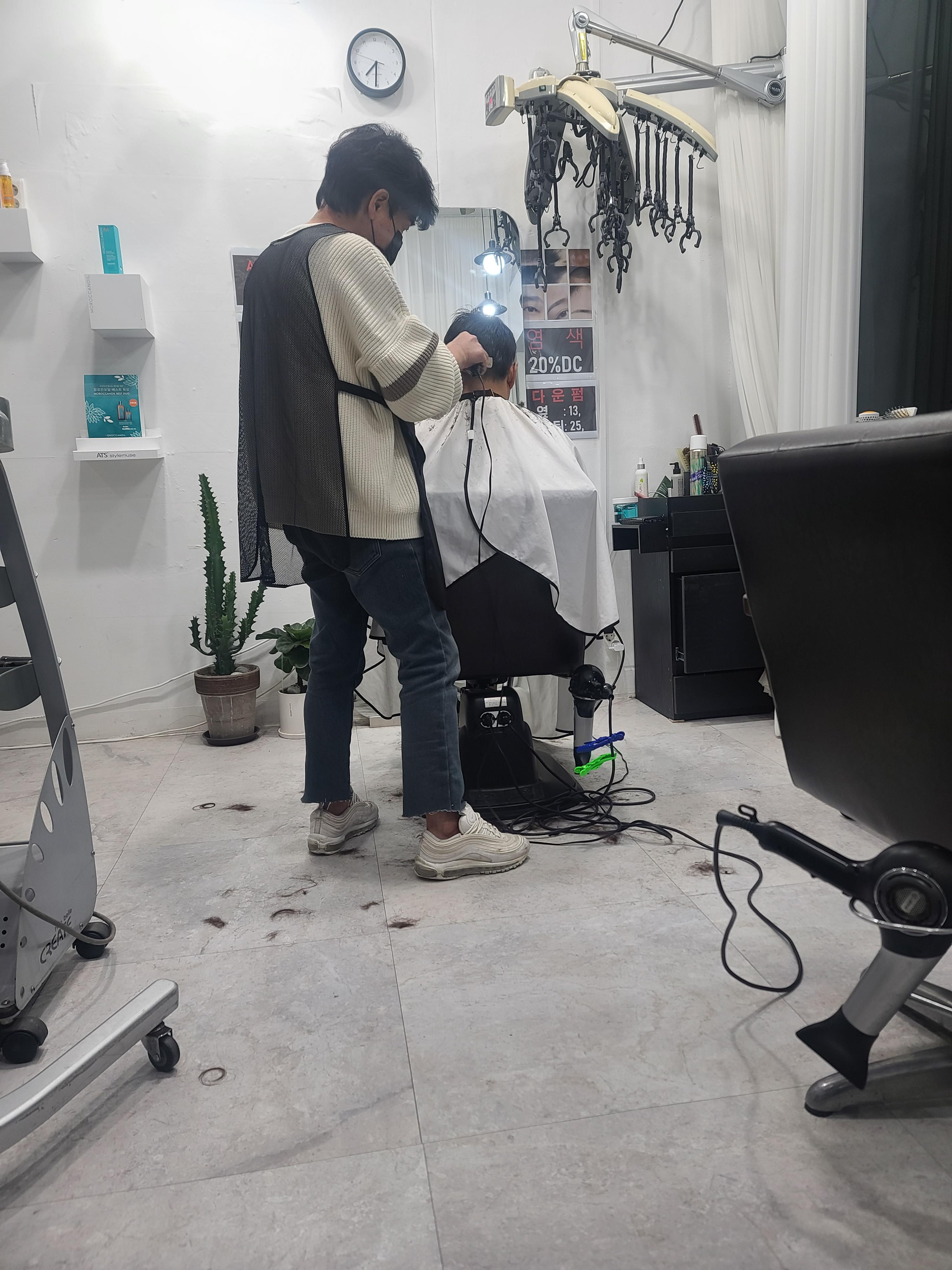 요즘 입소문이 돌아서인지 꾸준히 손님들이 많아서 예약을 빨리 하셔야될것같아요.남자커트와 펌 손님들이 많고 여자손님들도 염색과 커트,펌 등을 하러 오시네요.