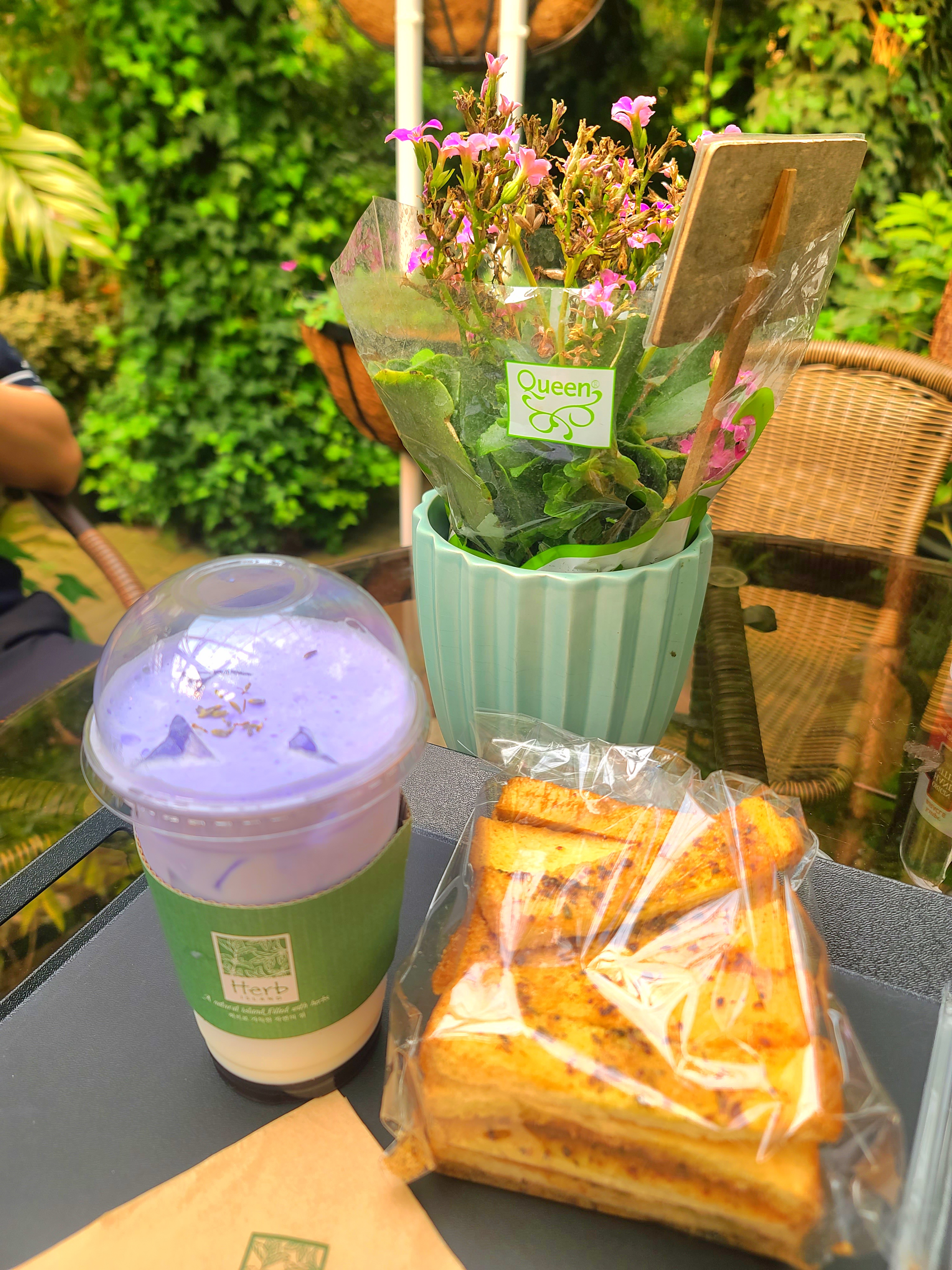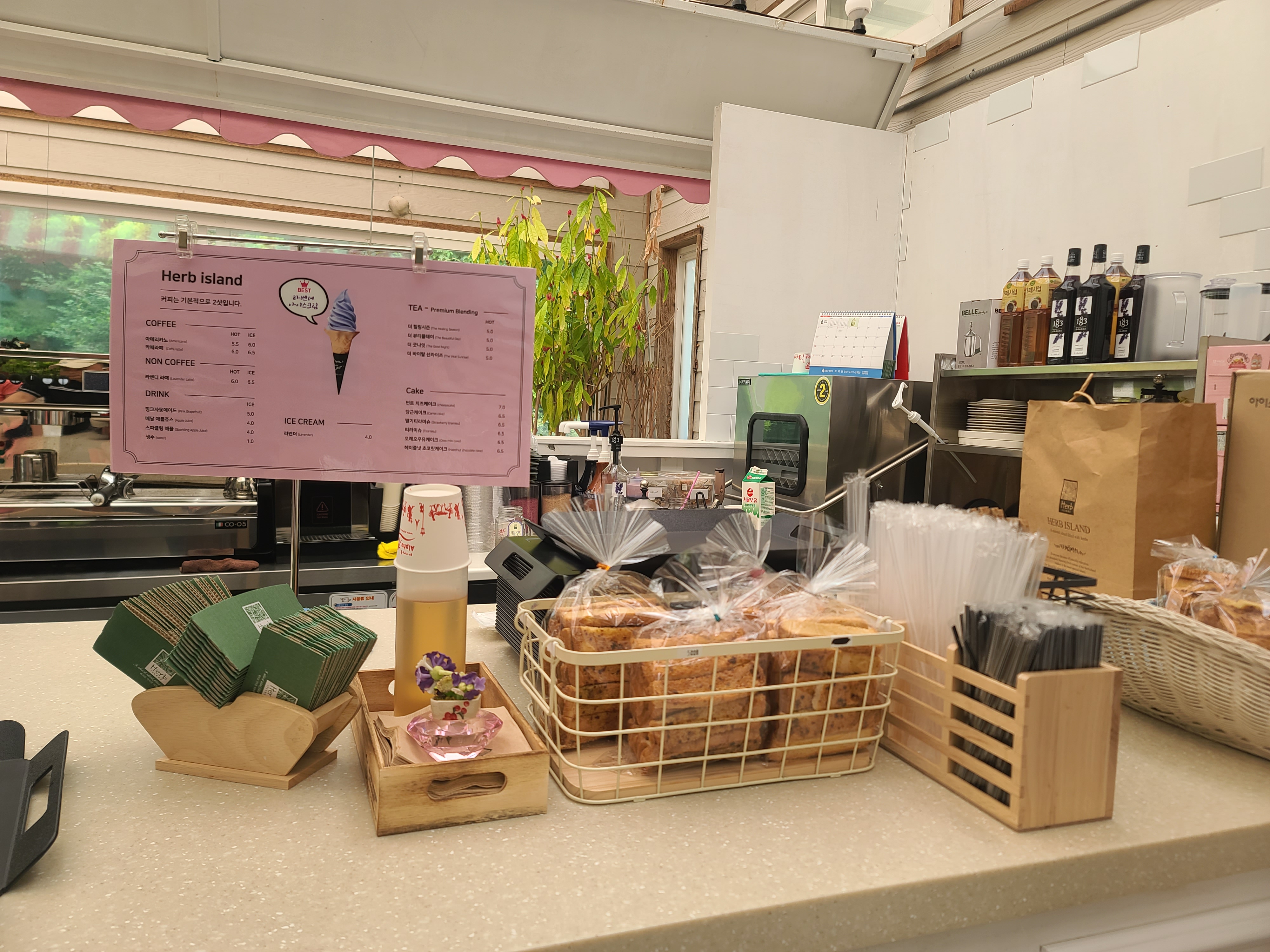 주문을 하고 식물원 내에 테이블을 선택하여 자리를 잡았습니다.