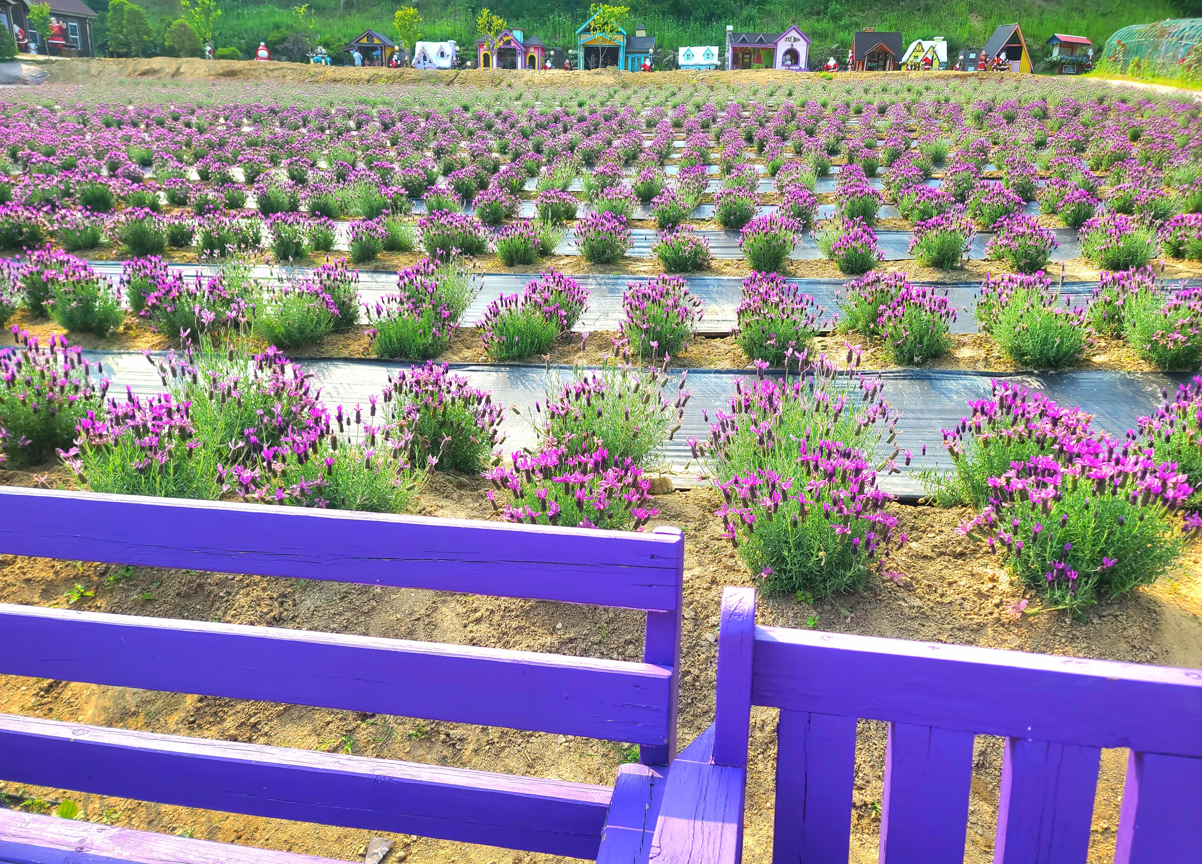 보라색의자와 보라색 라벤더가 잘 어울리네요^^
