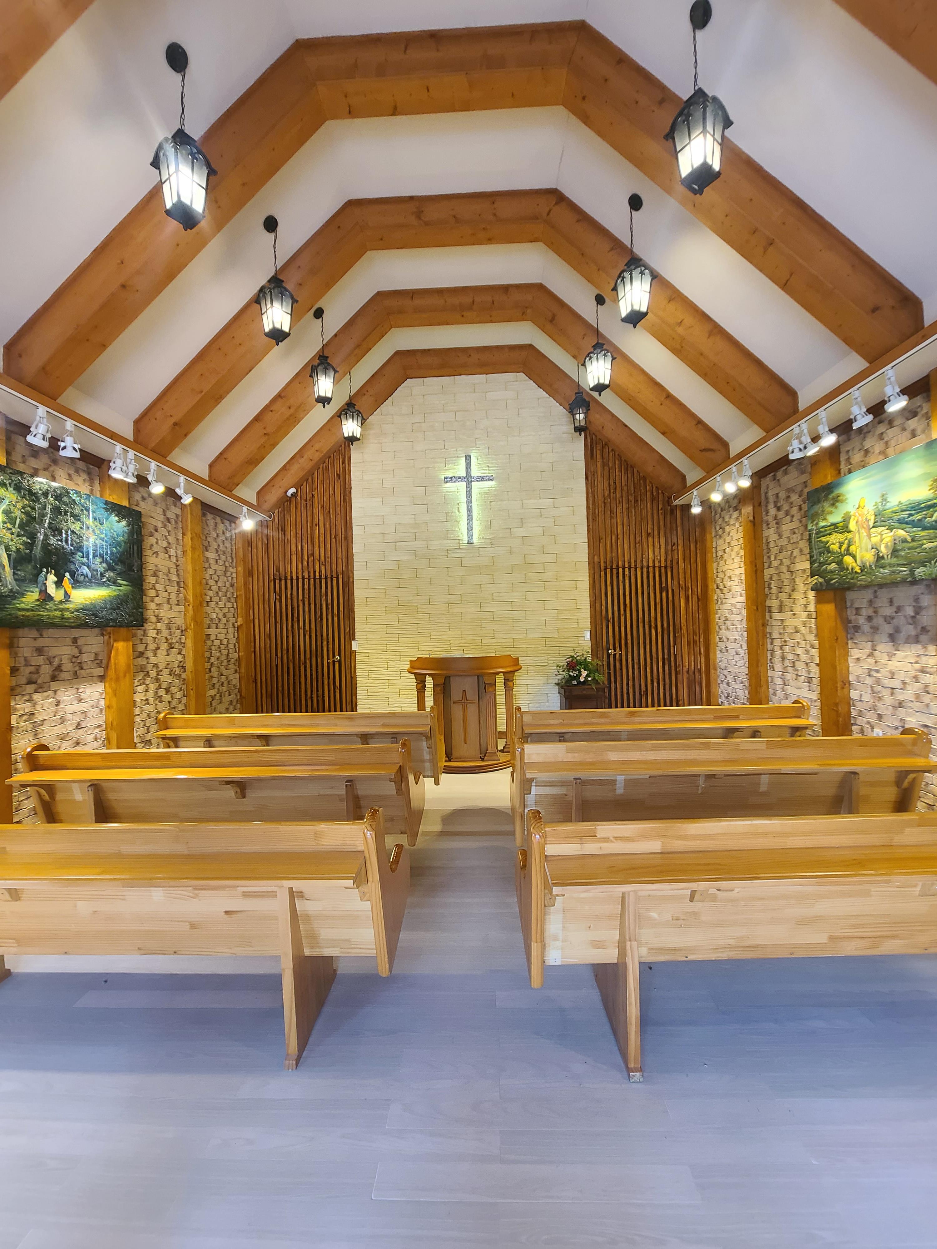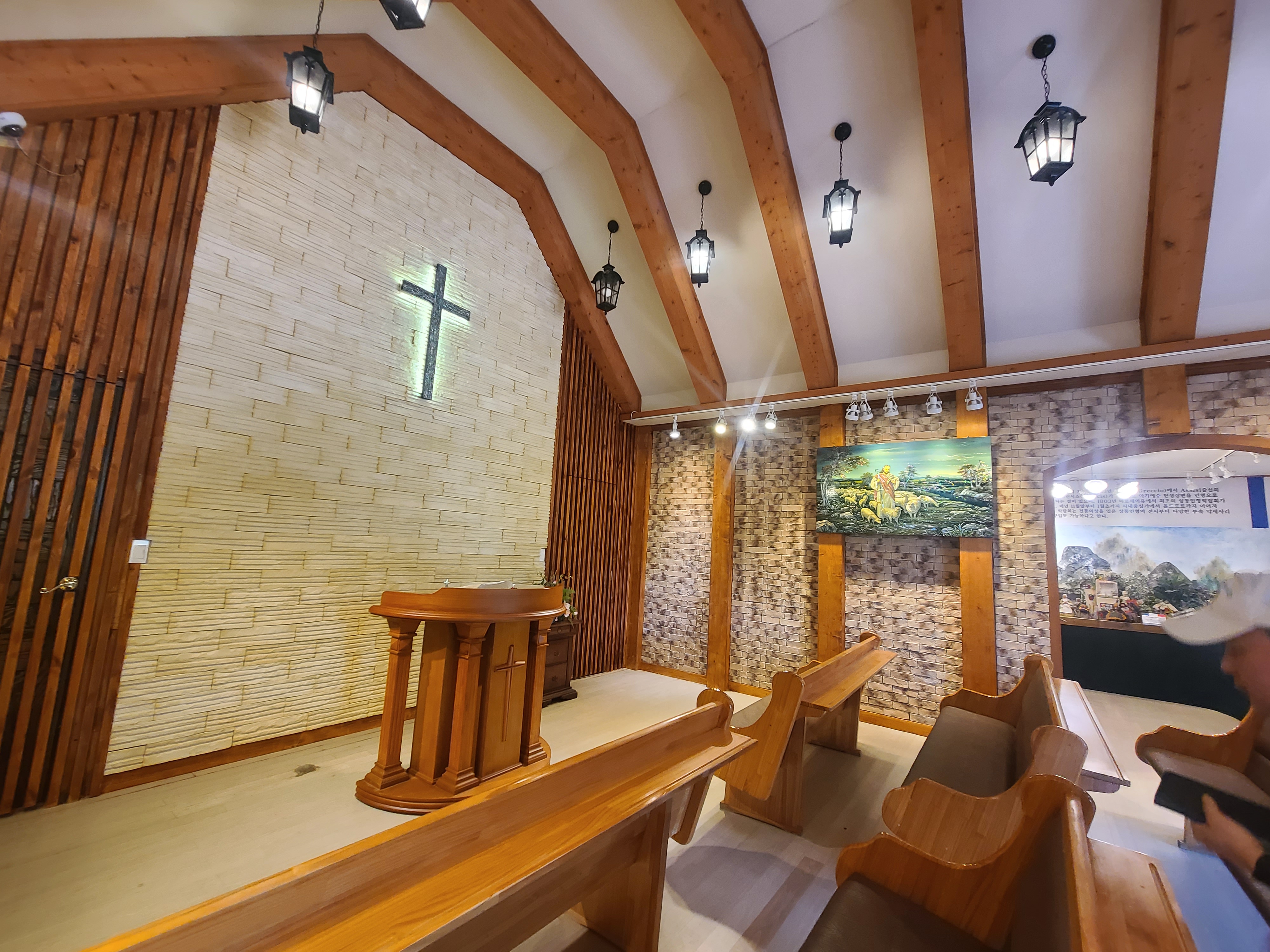 산타마을 앞에 보이는 산타교회로 이동했어요.