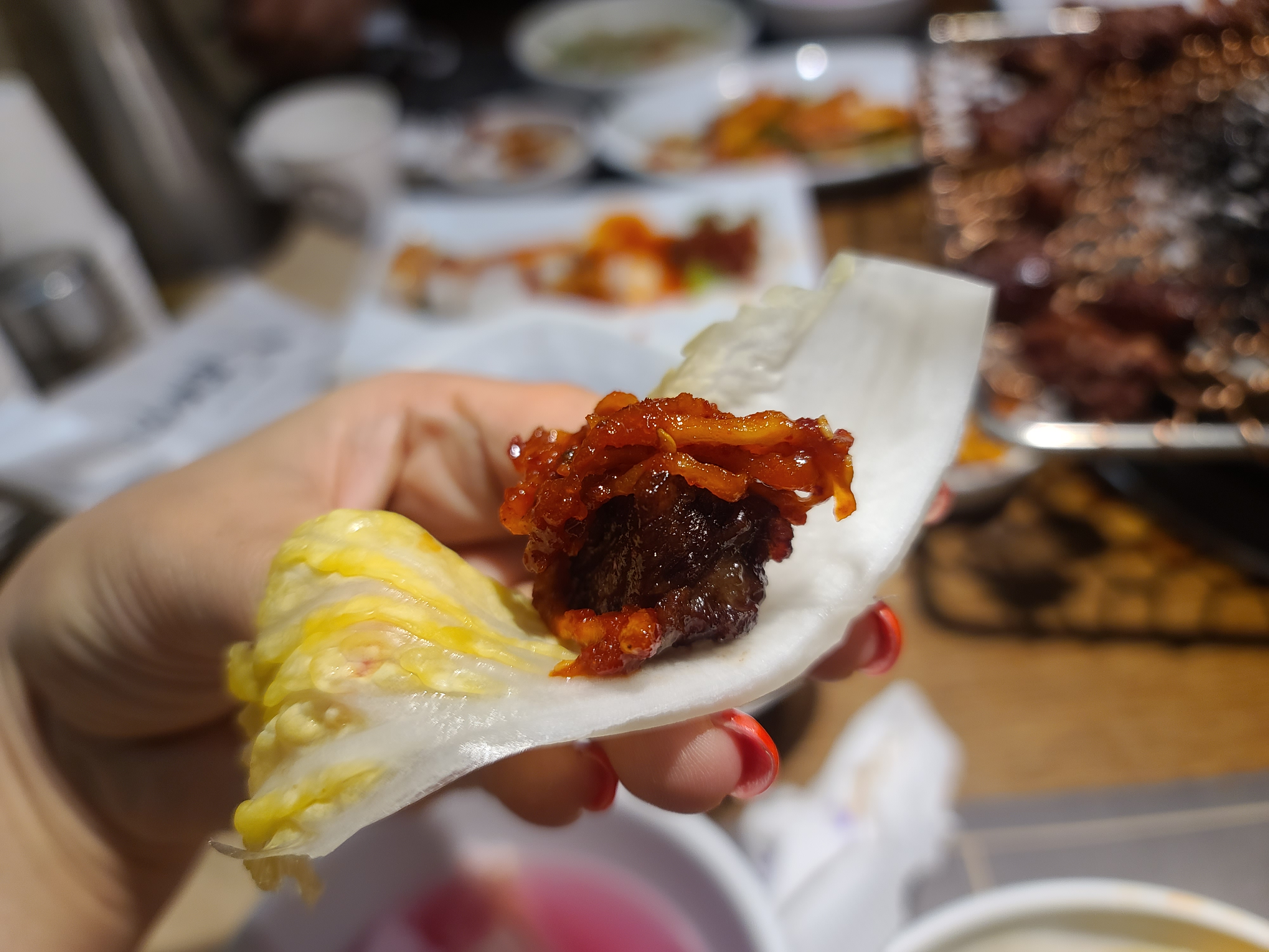 알배기배추에 고기와 무채절임을 올려서 먹으니 꿀조합이었어요ㅋ
