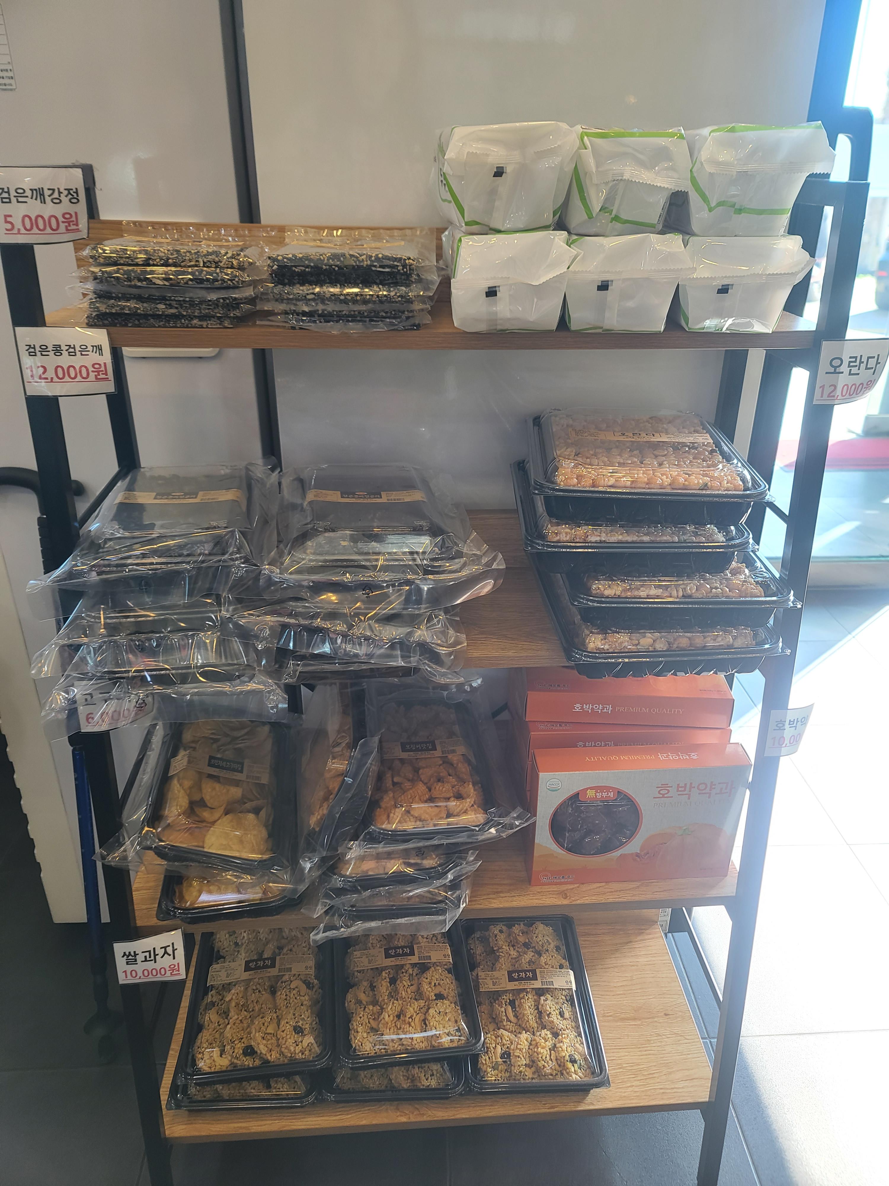 깨강정과 쌀과자 등 간식거리도 구매해요.