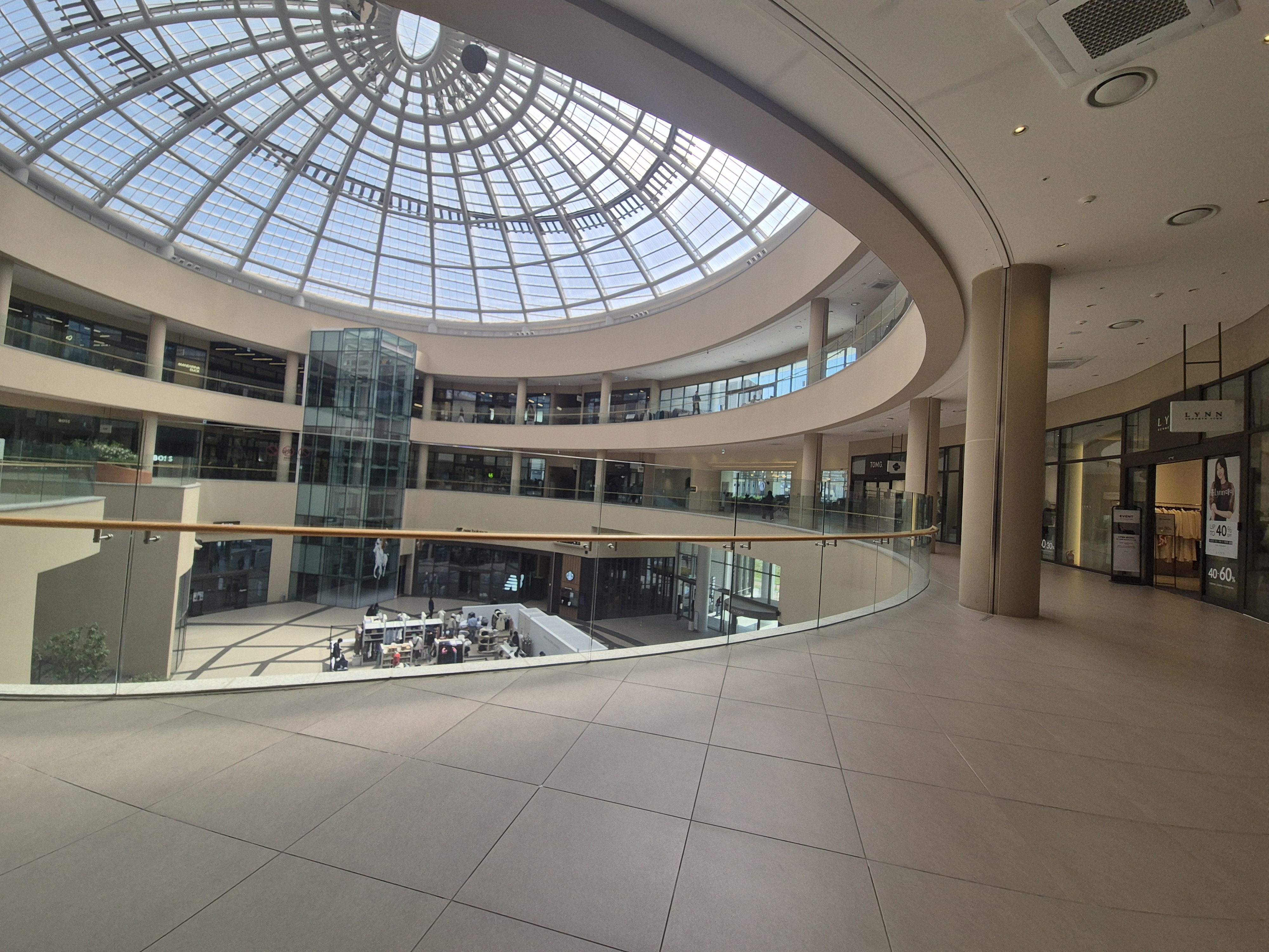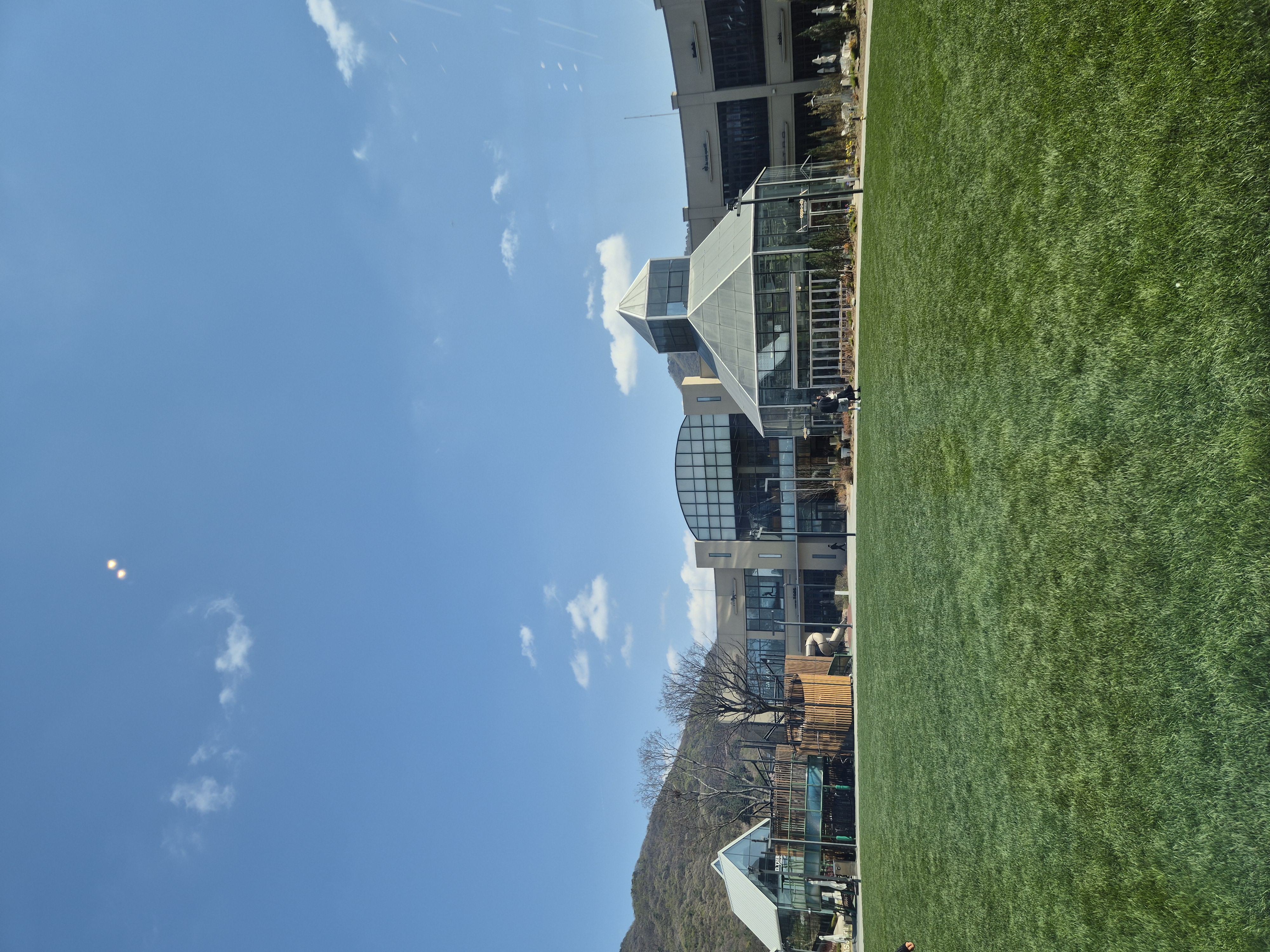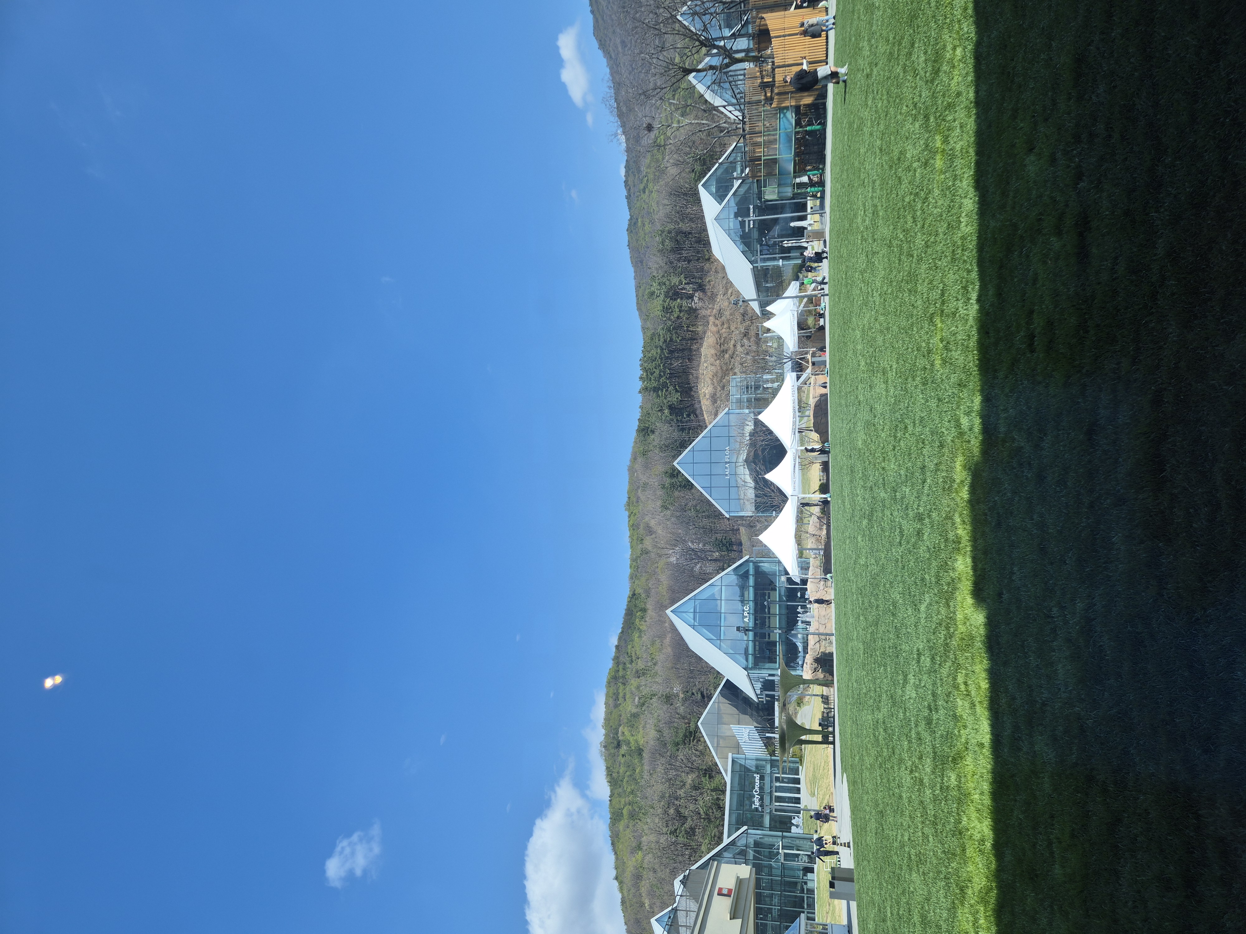 잔디밭 앞쪽에 보이는 건물들이 식사와 차를 마실수 있는 푸드코트예요.