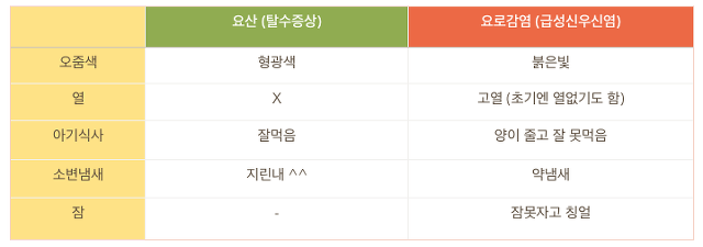 아가 소변색이 이상하다면 밑에 표를 비교해 보시면 빠른 대처하시는데 도움이 되실 듯 합니다.