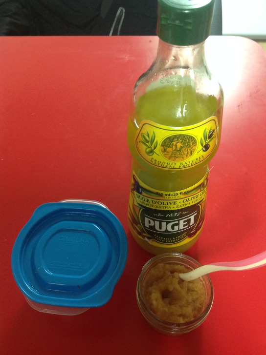 아침에 사과를 늘 갈아주는데,, 거기에 올리브오일 티스푼1 혼합해주면 됩니다
