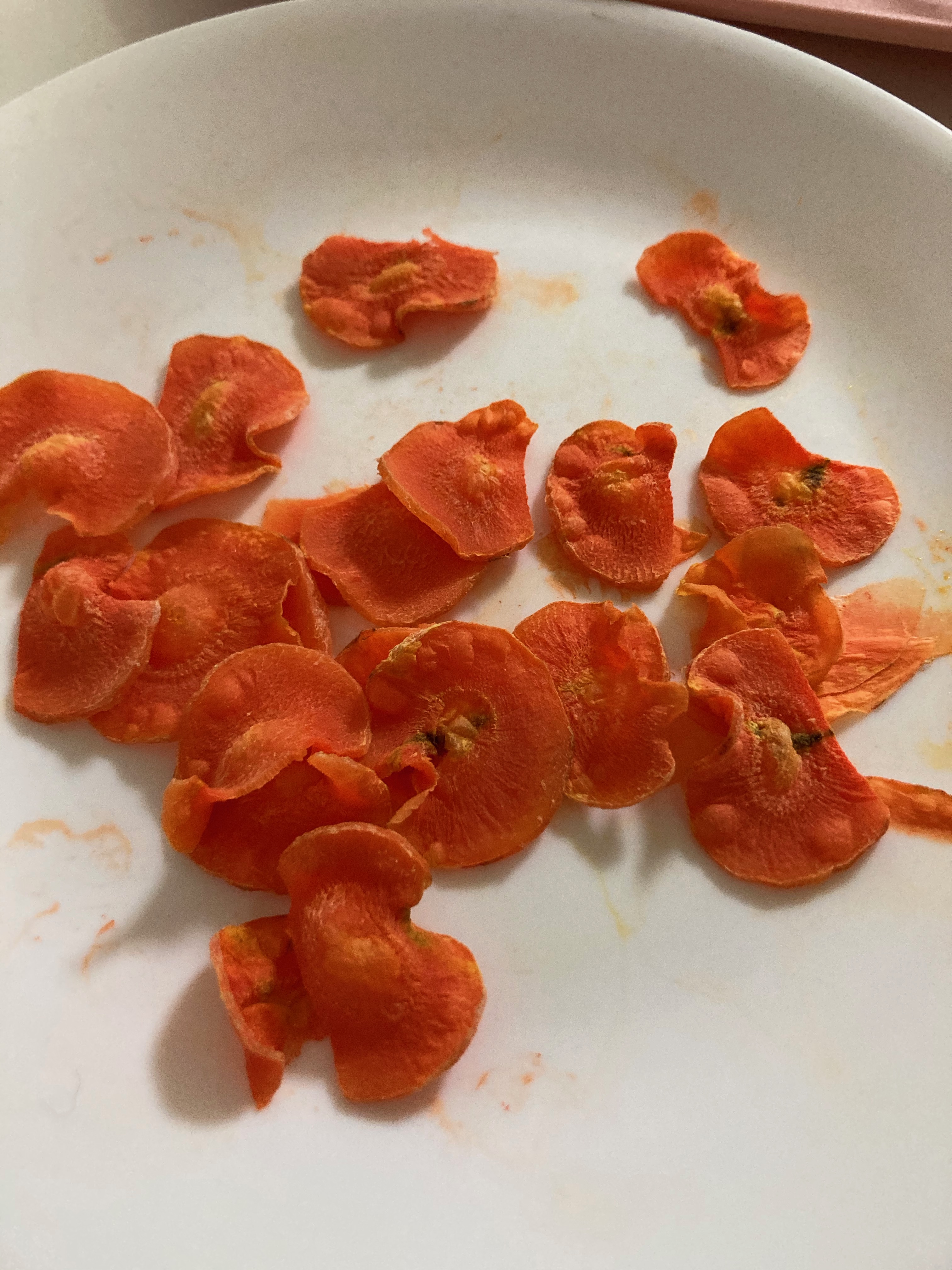 이게 당근한개 분량인데,,수분을 모조리 날렸더니 쪼그라 들었답니다.