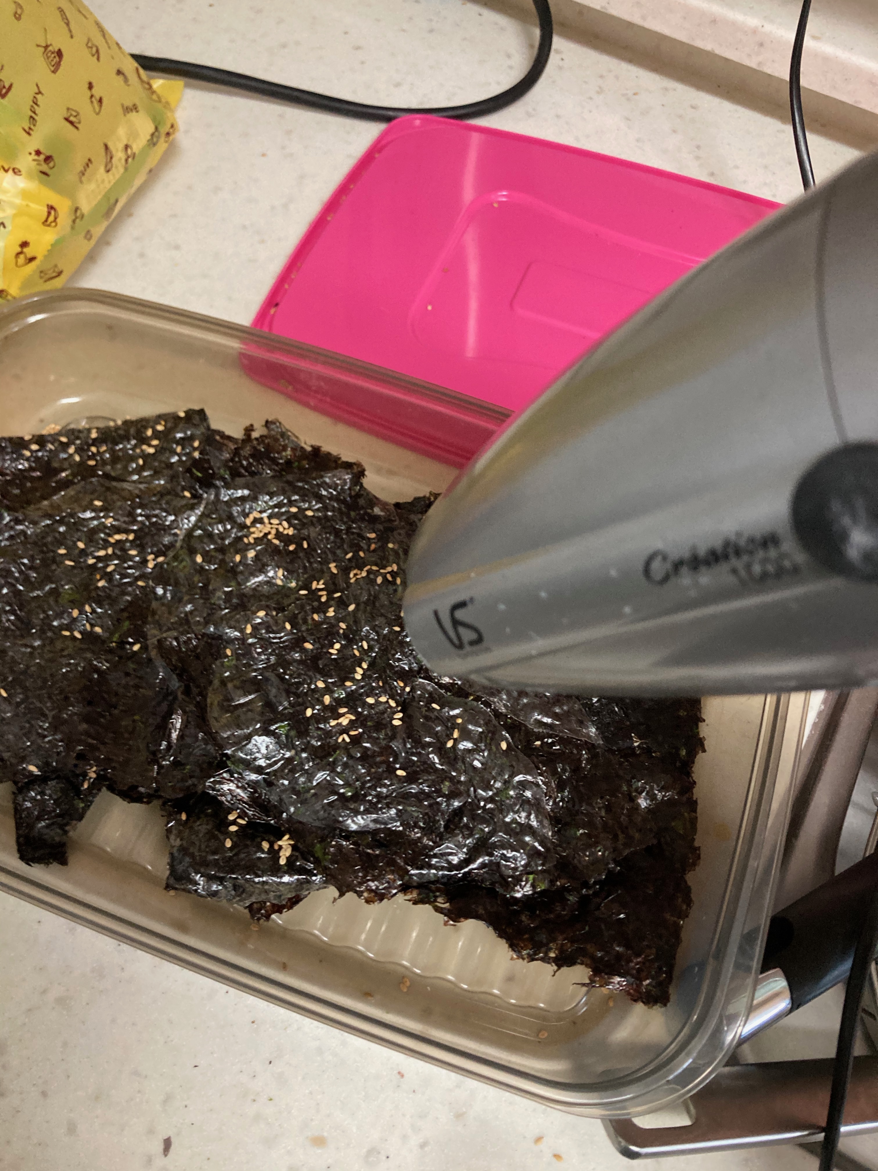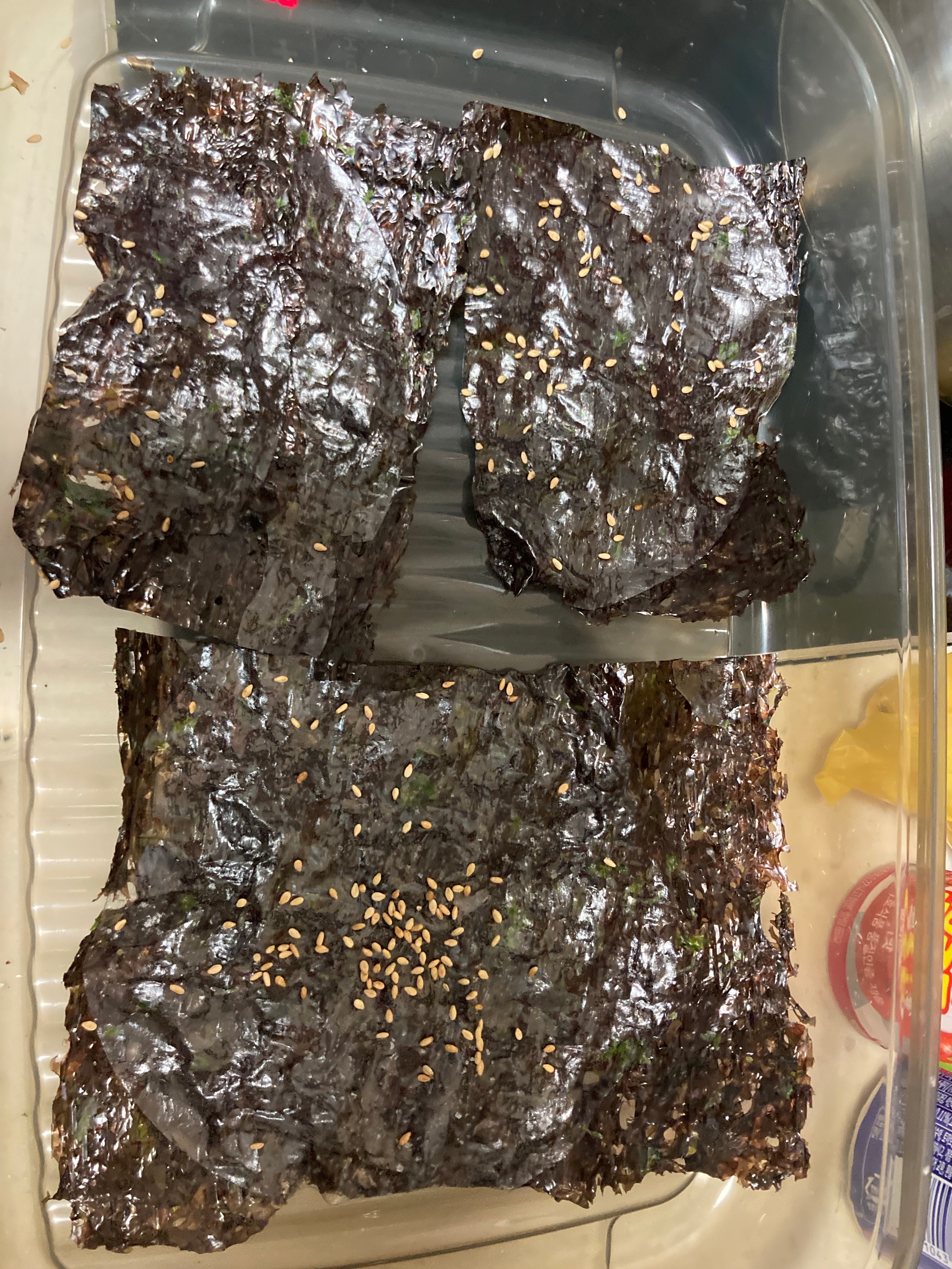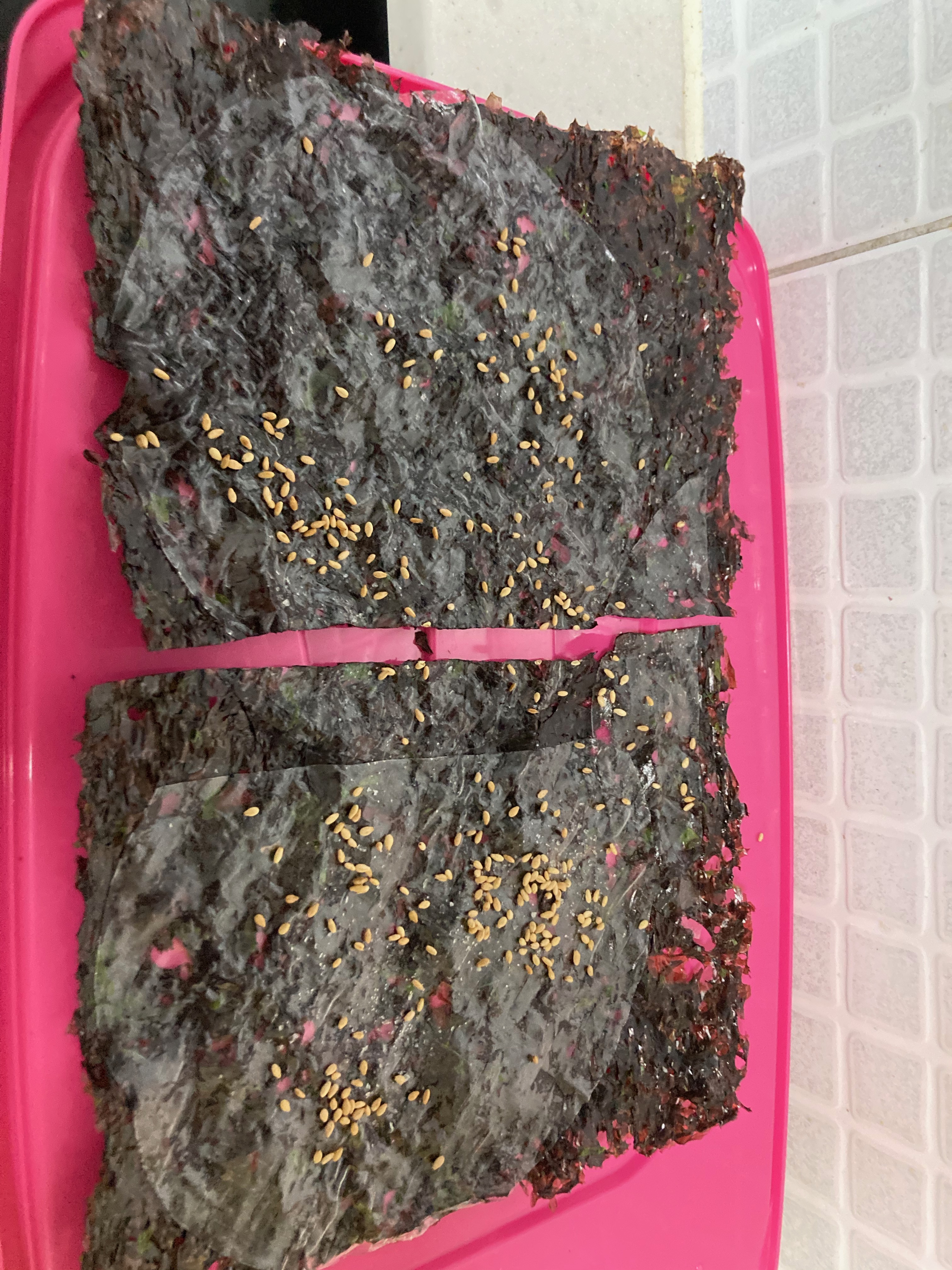 얇은 김에 찹쌀풀을 바르면 말리려고 옮기면 김이 찢어질 듯요.ㅋㅋㅋ