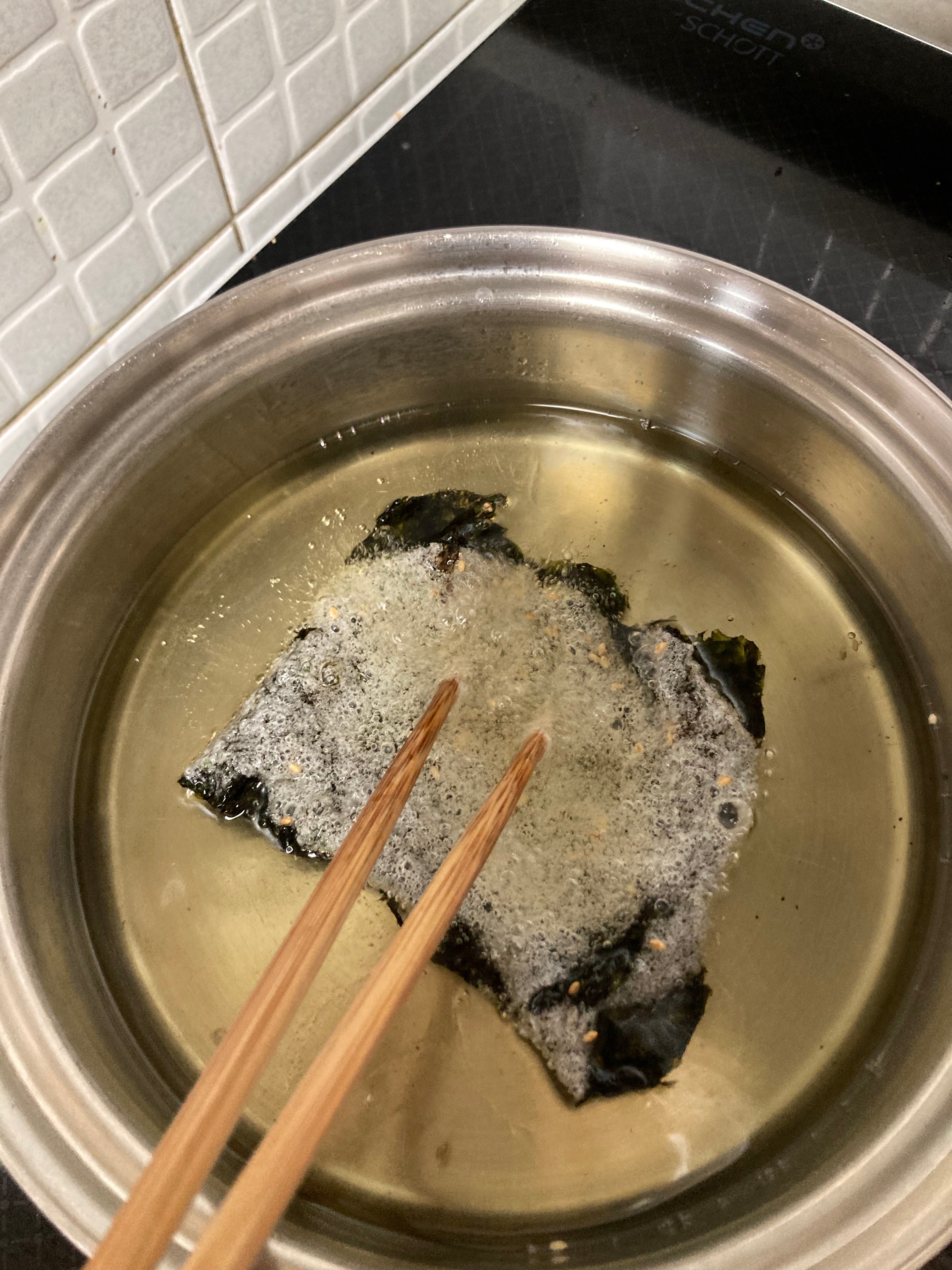 그래서 시간이 좀 더 걸리긴 하지만, 찹쌀 특유의 쫀득하고 고소한 식감이 더해져 김부각이 훨씬 풍부하고 만족스러운 맛을 내줍니다.