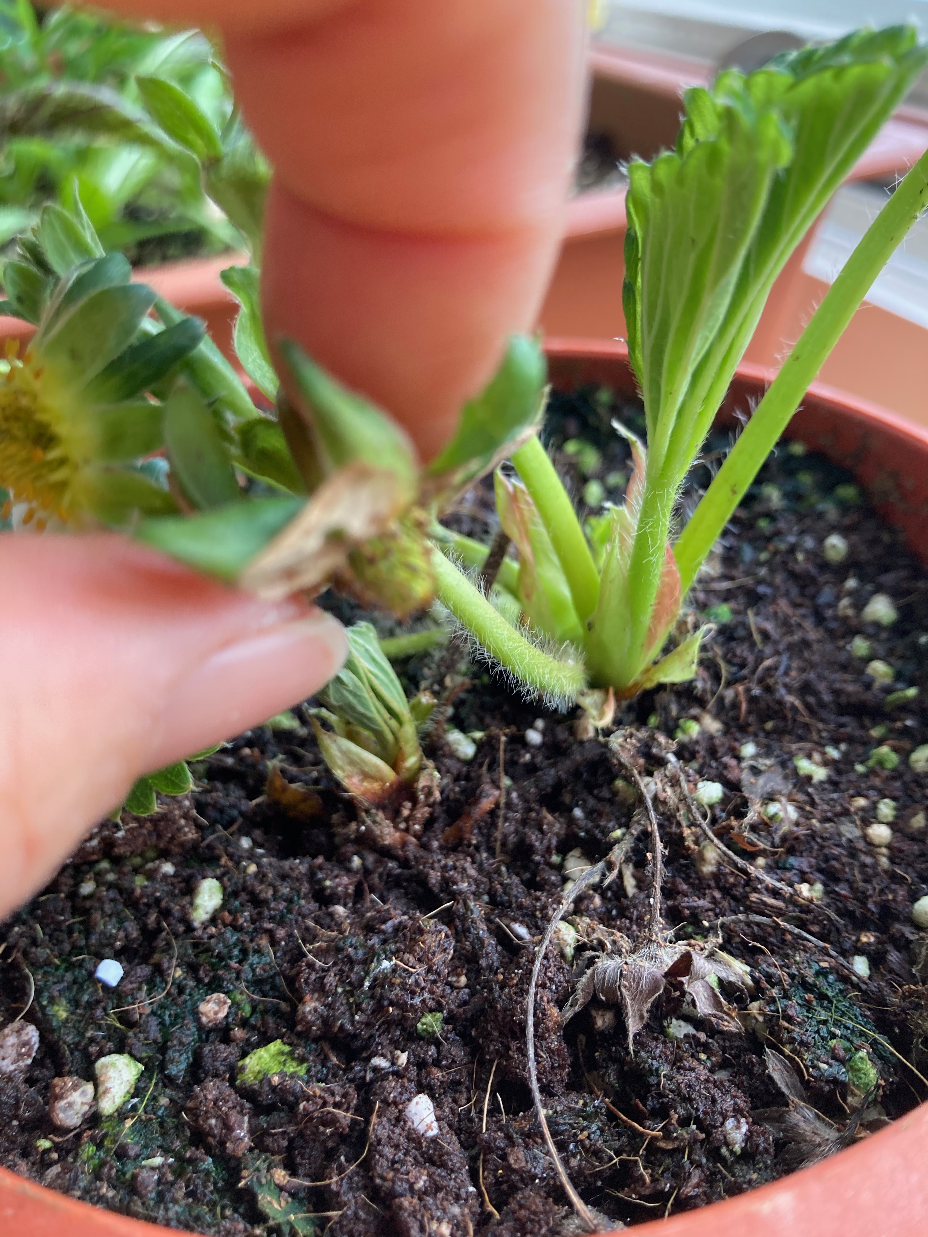 딸기에서 런너가 나오거든요..줄기가 뻣어나오는데 그걸로 번식?해요. (씨로도 발아가 되어 클수도 있다곤 하는데 쉽지 않다고 하네요~ ^^)