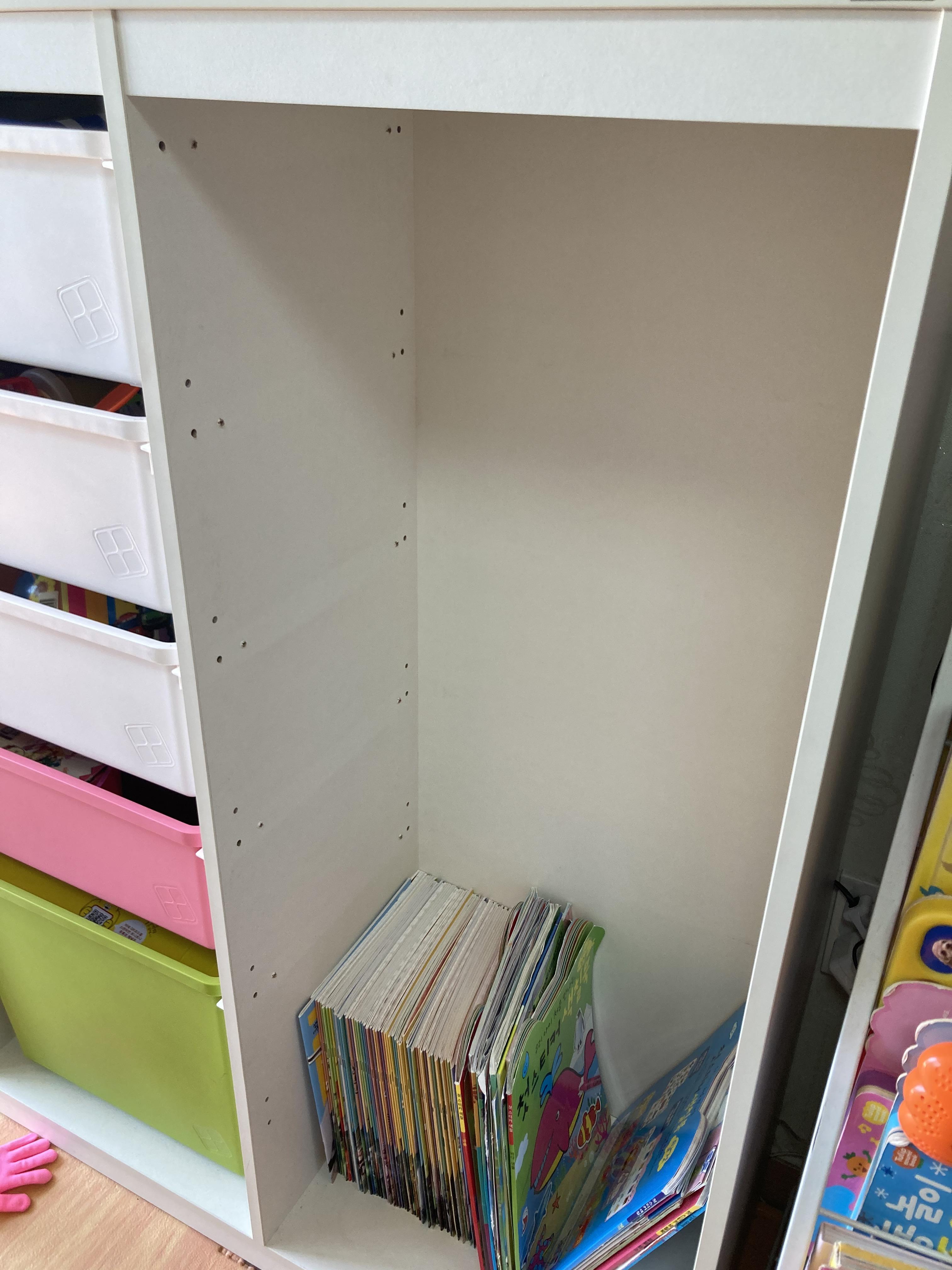 장난감이 좀 더 줄어들면 한칸을 더 책장으로 바꿔야 겠습니다.