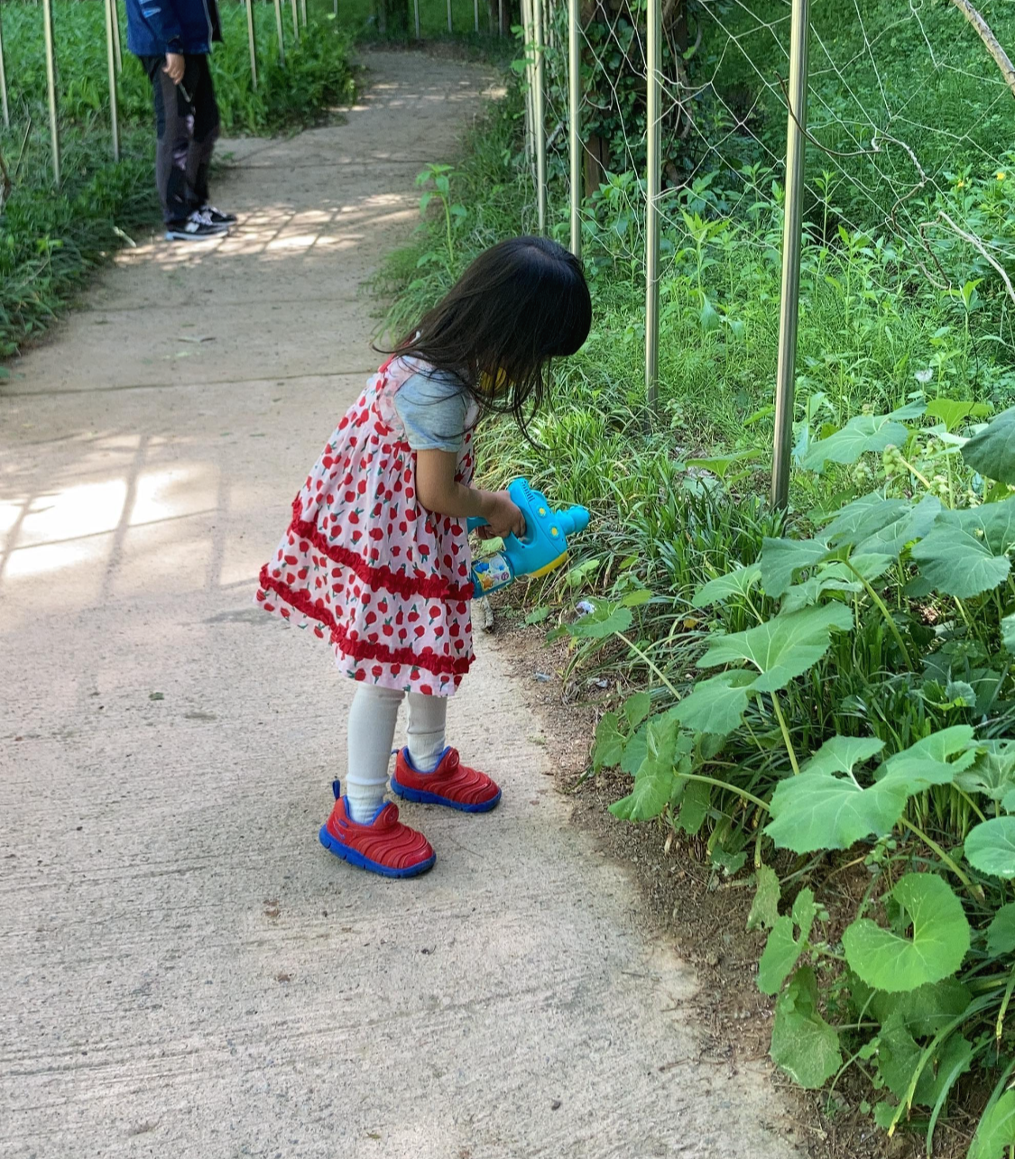 가족끼리 산책하고, 아이는 좋은 친구들도 만나고