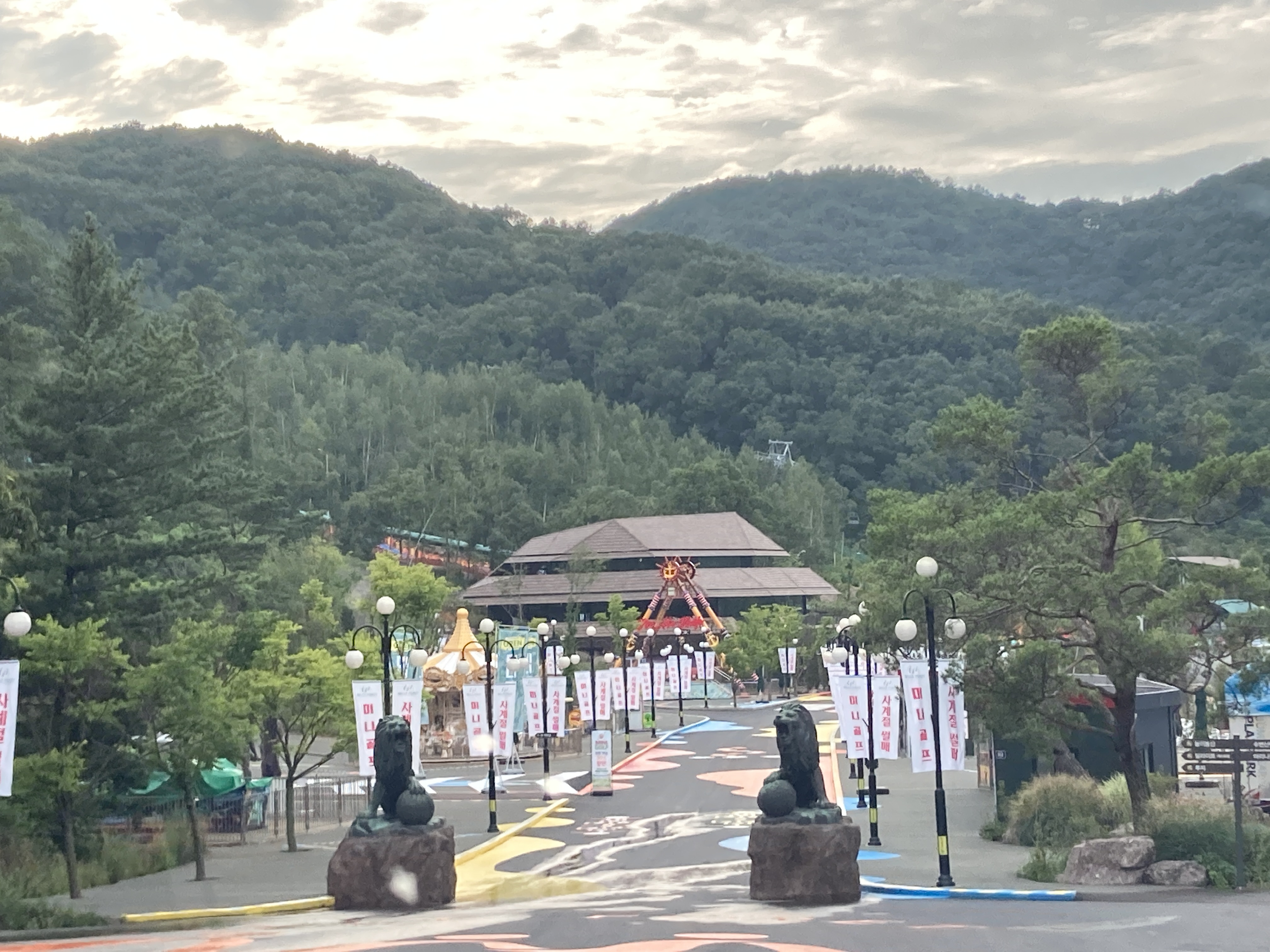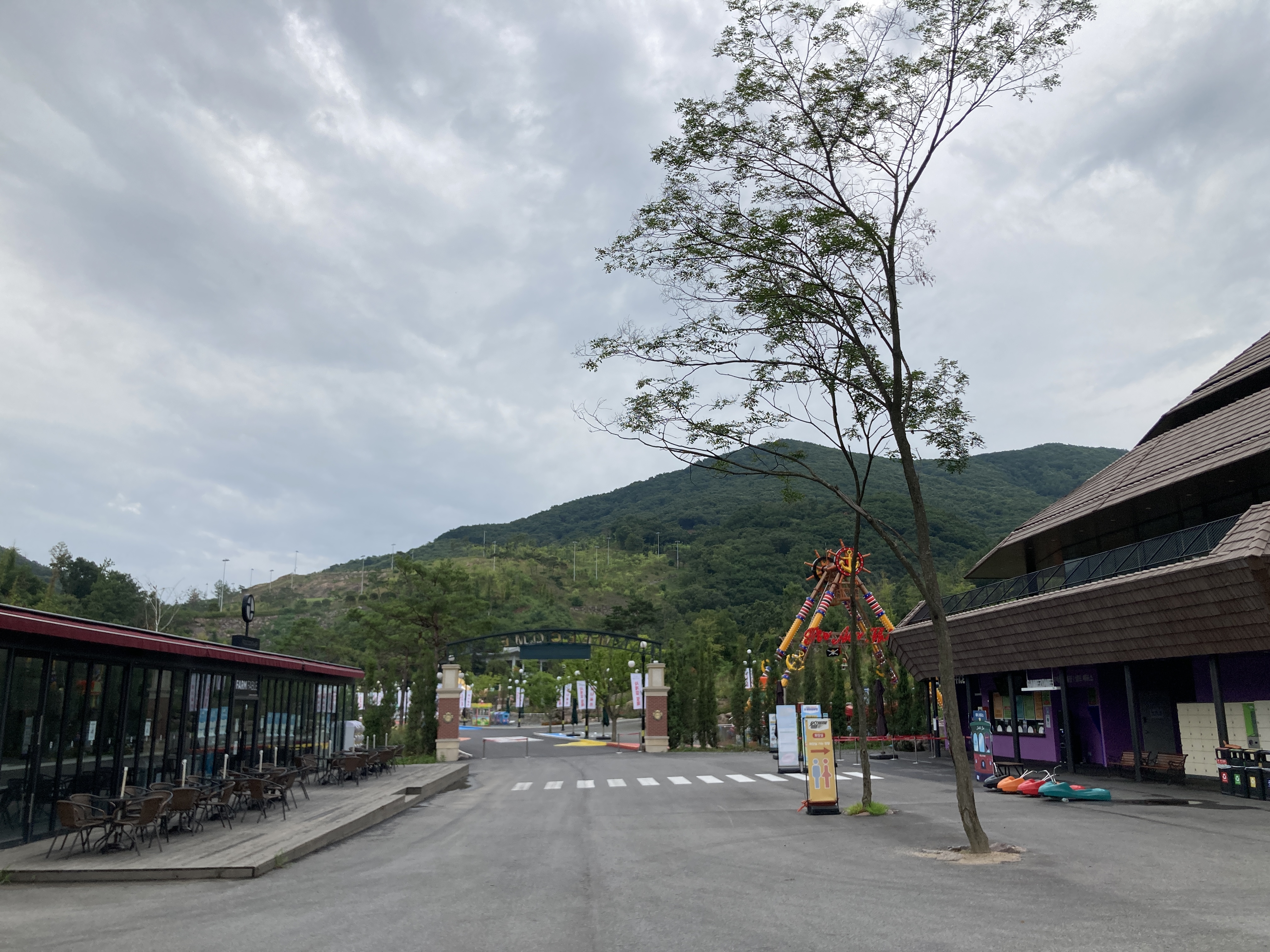 놀이동산 입구, 가운데 건물이 2층에 푸드코트가 있습니다.