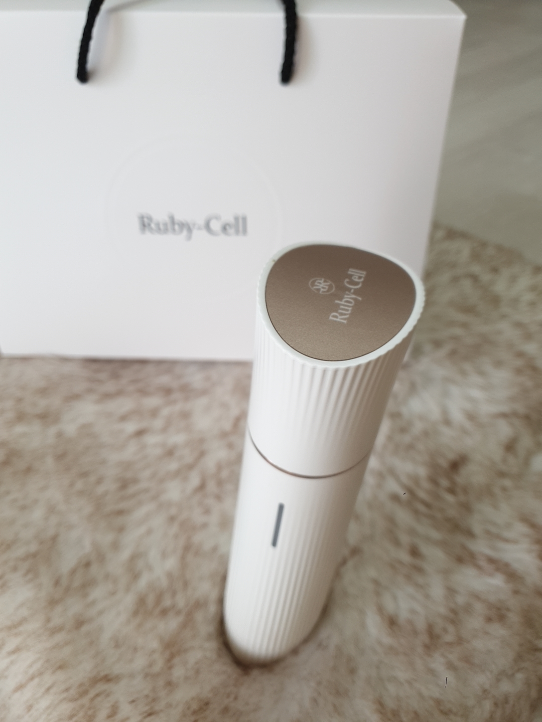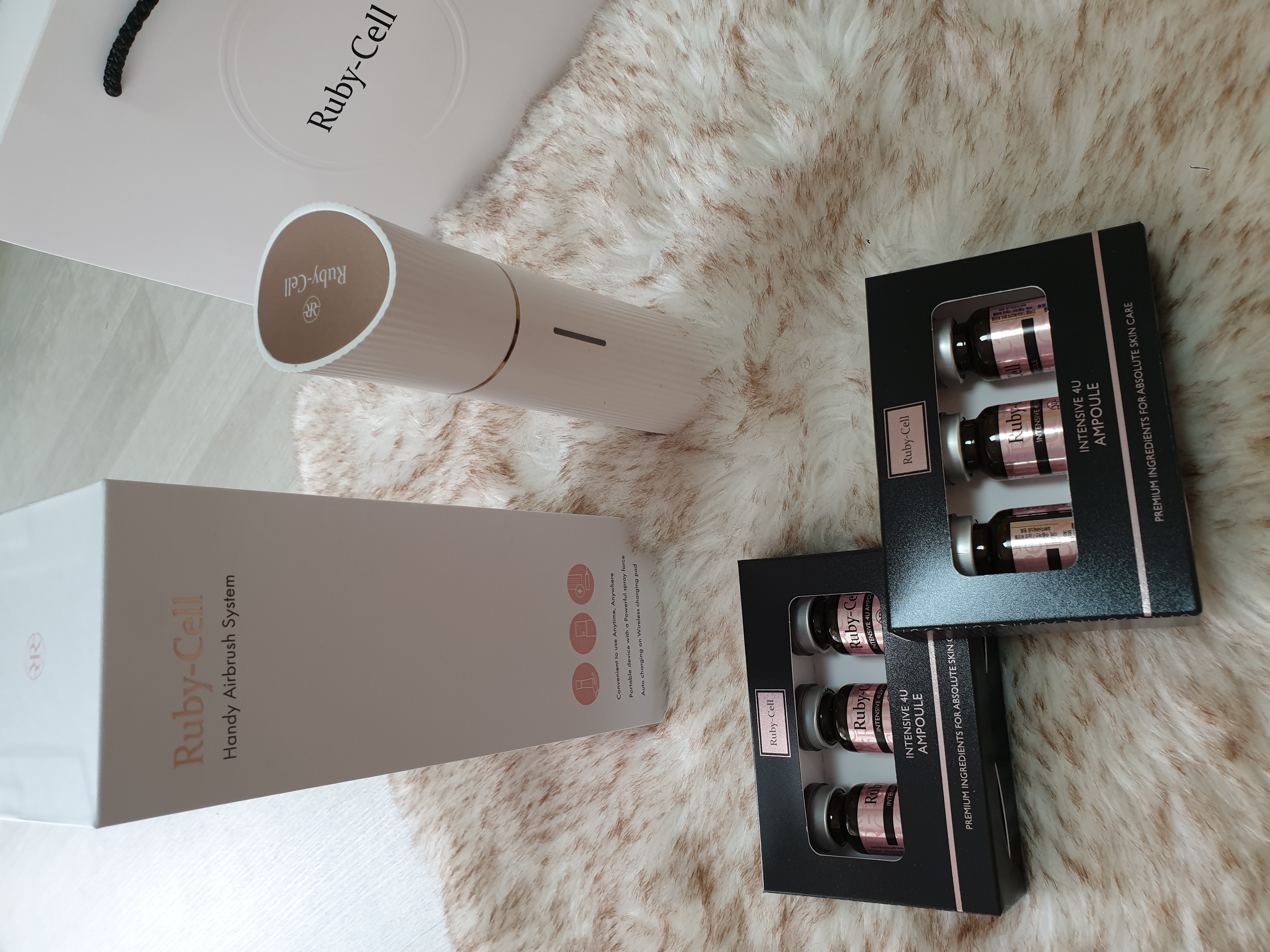 루비셀 제품은 화장품 자체의 효능도 뛰어나 인기를 얻고 있지만, 피부에 미세 분사를 해주는 전용 에어브러시 기기가 함께 구성된 점이 특징이었습니다.